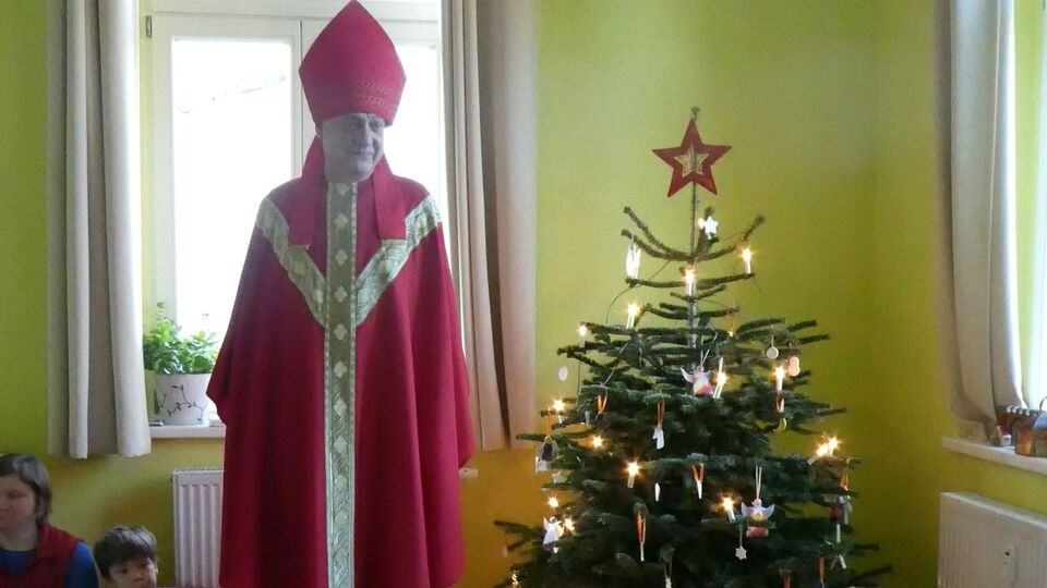 Wer klopft denn da an der Tür des Kinderhauses "Guter Hirte"? Der Bischof Nikolaus!