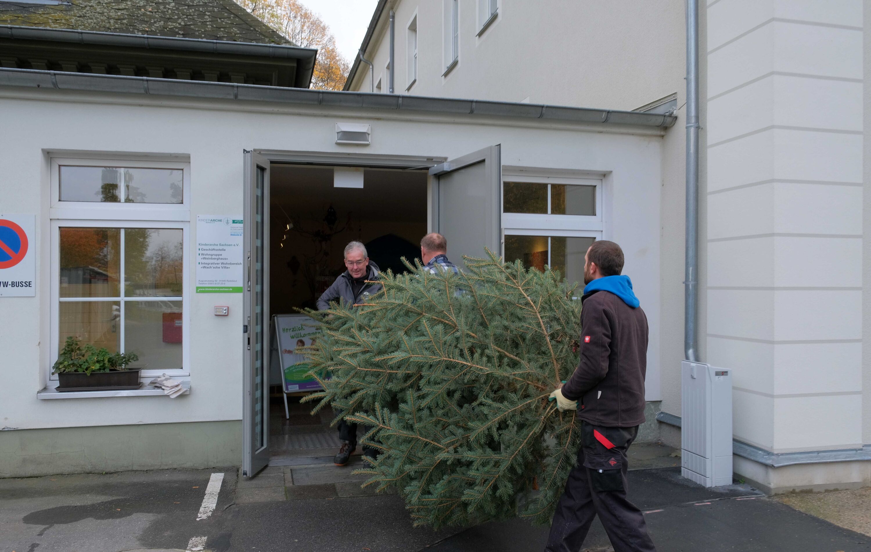 Zehn Jahre später ist der gerettete Baum über vier Meter hoch gewachsen und wurde zu groß für die Gartensparte. Also beschloss Bernd Walther, die Tanne der Kinderarche Sachsen zu schenken. Mit einem Kumpel sägte er sie ab und brachte sie auf einem Anhänger in die Geschäftsstelle nach Radebeul.