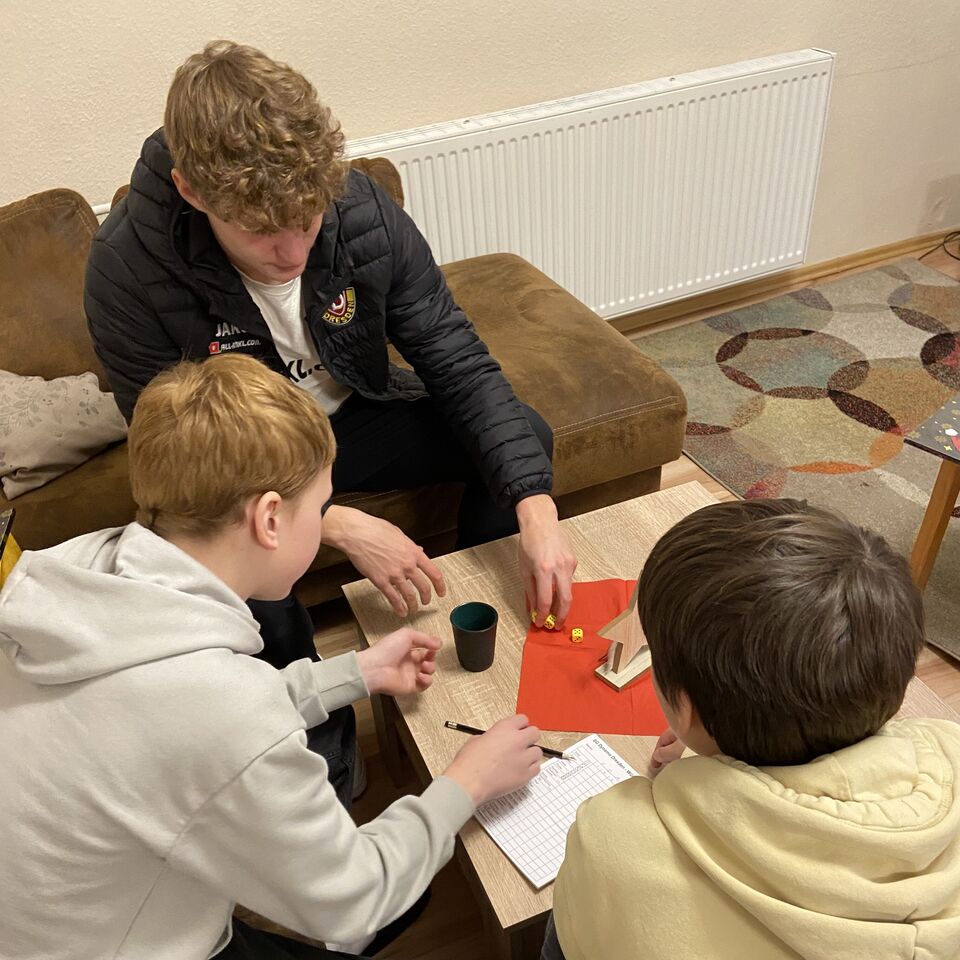 Was für eine Bescherung in unserer Wohngruppe Seyde! Im Rahmen ihrer Weihnachts-Wichtel-Runde kam Dynamo Dresden auf einen Besuch vorbei. In Seyde überraschte der erst 19-jährige Spieler Friedrich Müller die Kinder und brachte viel Zeit mit. Er spielte mit ihnen, auch Fußball (bei schlechtem Wetter eben gleich im Haus), gab Autogramme und wichtelte tolle Dynamo-Fanartikel.