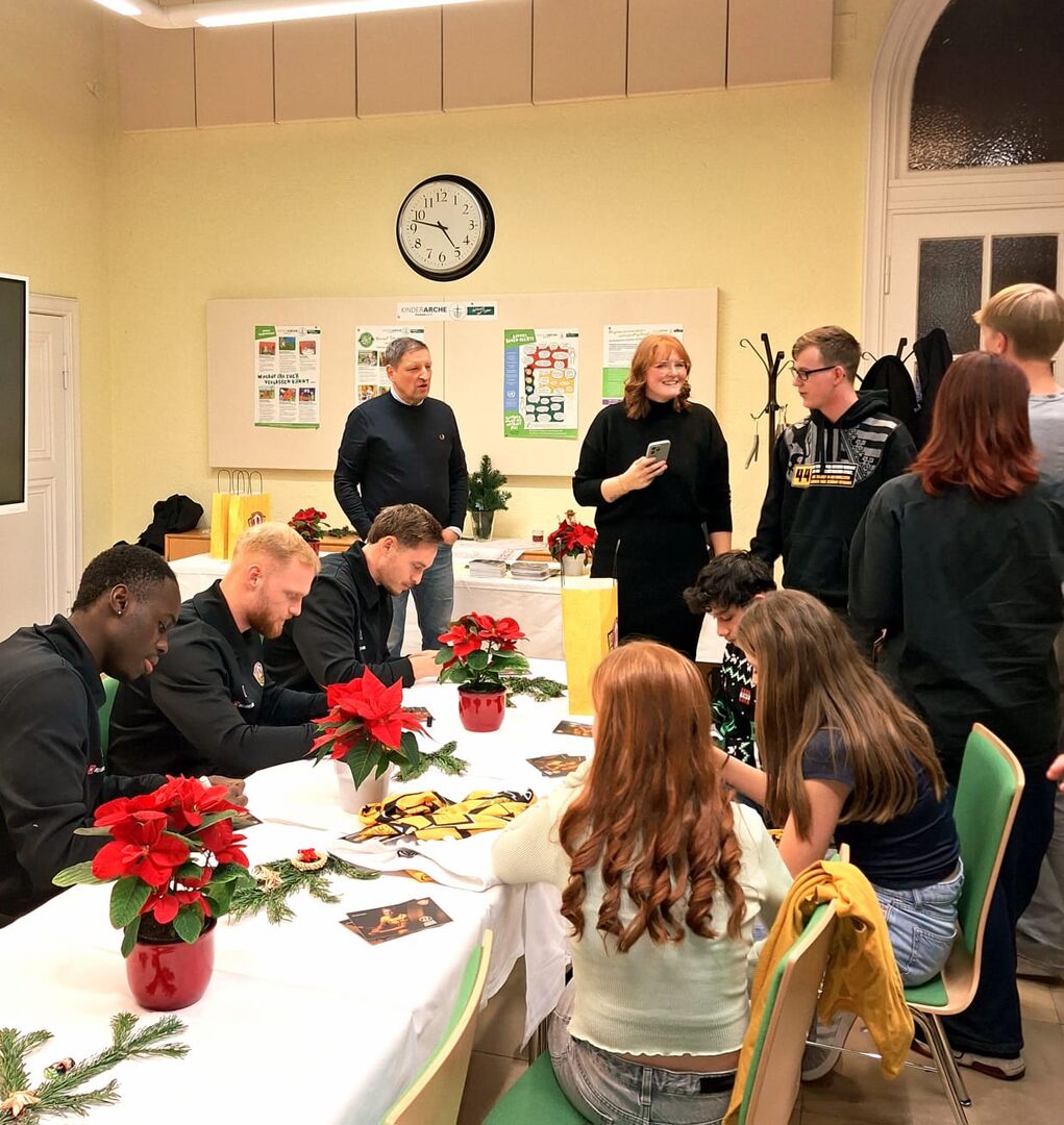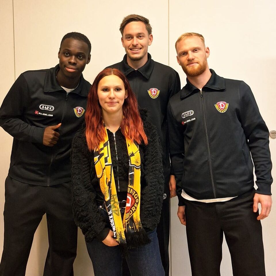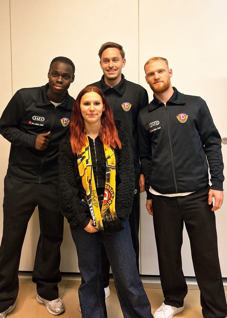 Ein paar Tage später durften sich dann auch die Dynamo-Fans in Radebeul über Besuch freuen: Die Spieler Kofi Amoako, Aljaž Casar und Nils Fröling kamen vorbei und bereiteten den jungen Menschen aus unseren Wohngruppen mit dynamischen Geschenken eine Freude. Besonders die Autogramme und Fotos mit den Spielern waren das Highlight.
