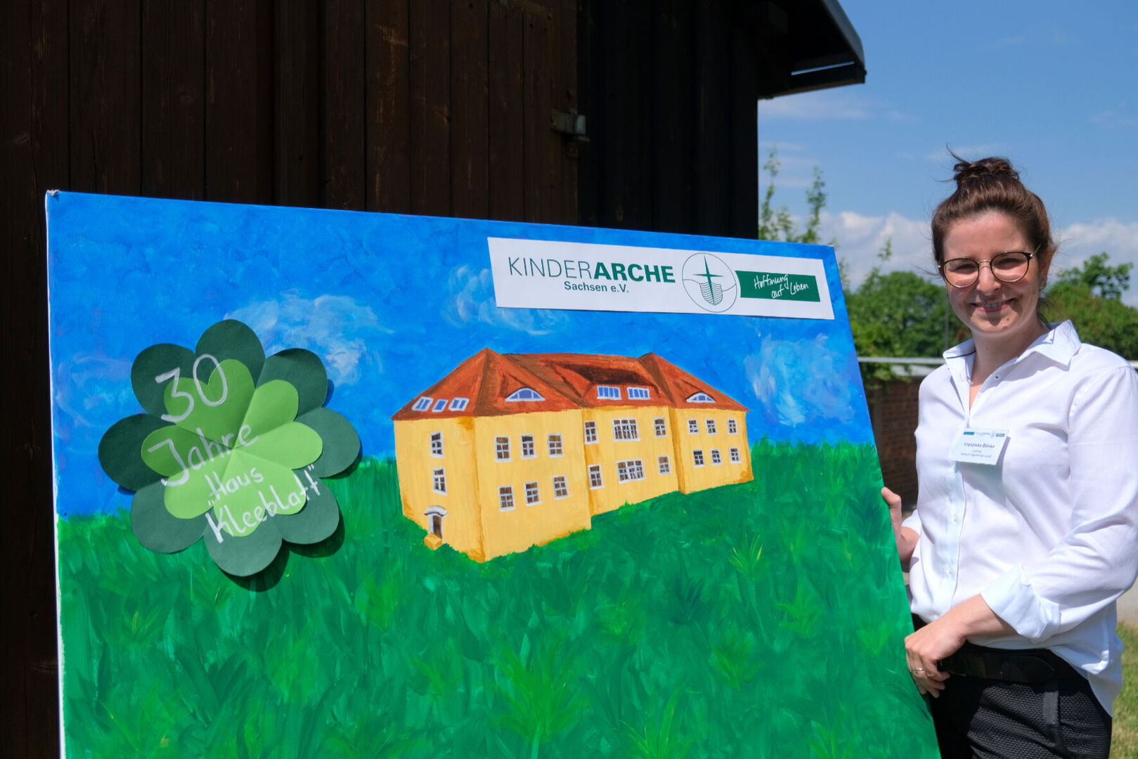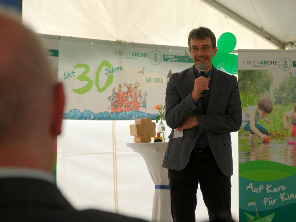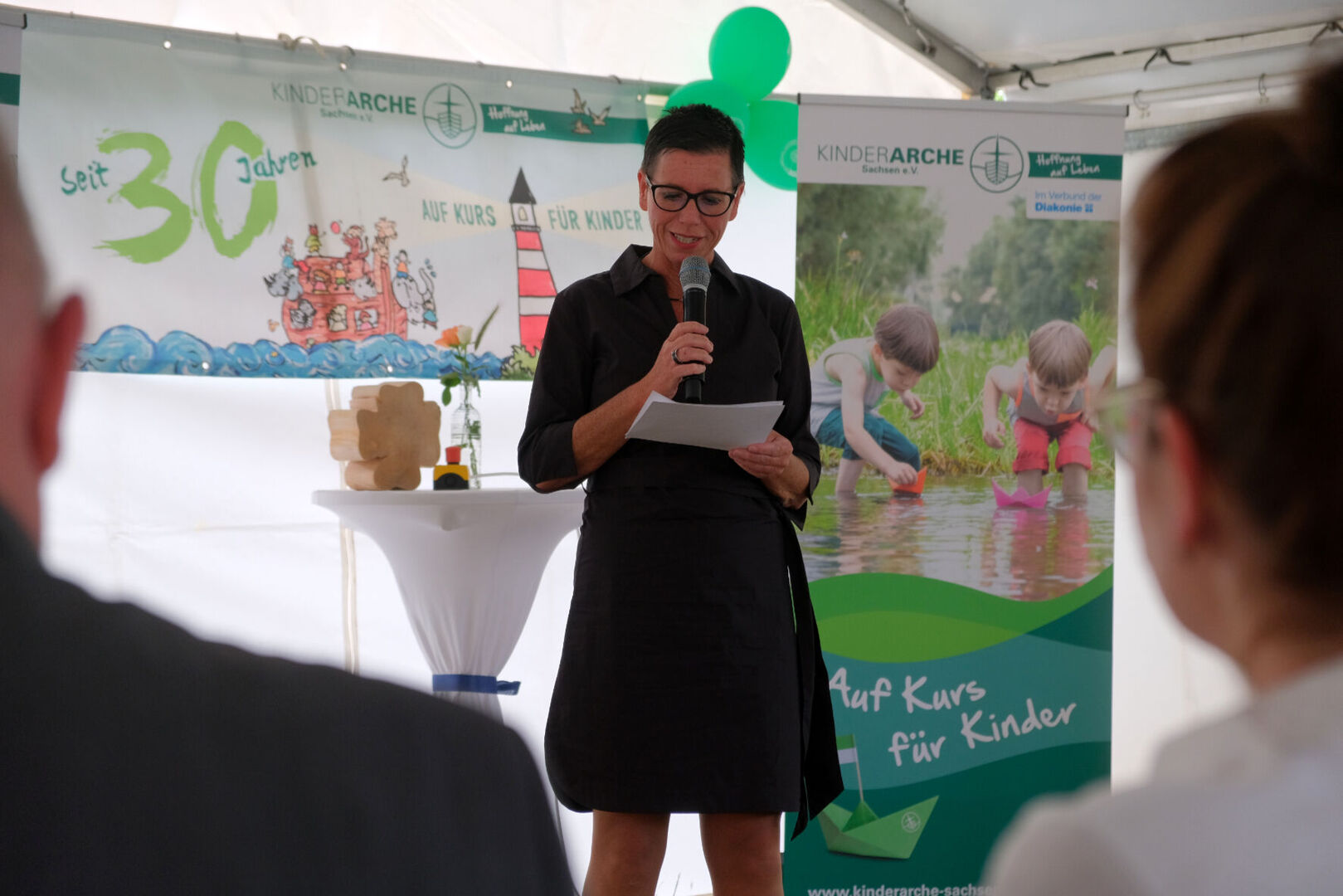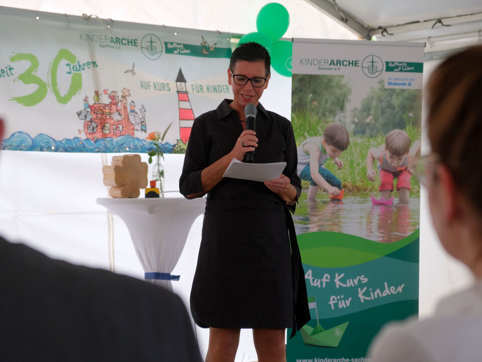 Was das Glück eigentlich ist und wie leicht wir es übersehen, davon erzählte die zehnjährige Sonya in der „Geschichte vom kleinen Glück“. Anschließend überbrachte Jörg Szewczyk, erster Beigeordneter des Landkreises Bautzen, seine Glückwünsche und lobte die Arbeit der Kinderarche Sachsen im Kreis. „Ein starkes Schiff, ein mutiger Kapitän, ein sicherer Ort für Kinder“ – so beschrieb Monique Petzold, Jugendamtsleiterin des Kreises, das „Haus Kleeblatt“ in ihrem Grußwort und dankte den Mitarbeitenden für ihre engagierte Arbeit.
