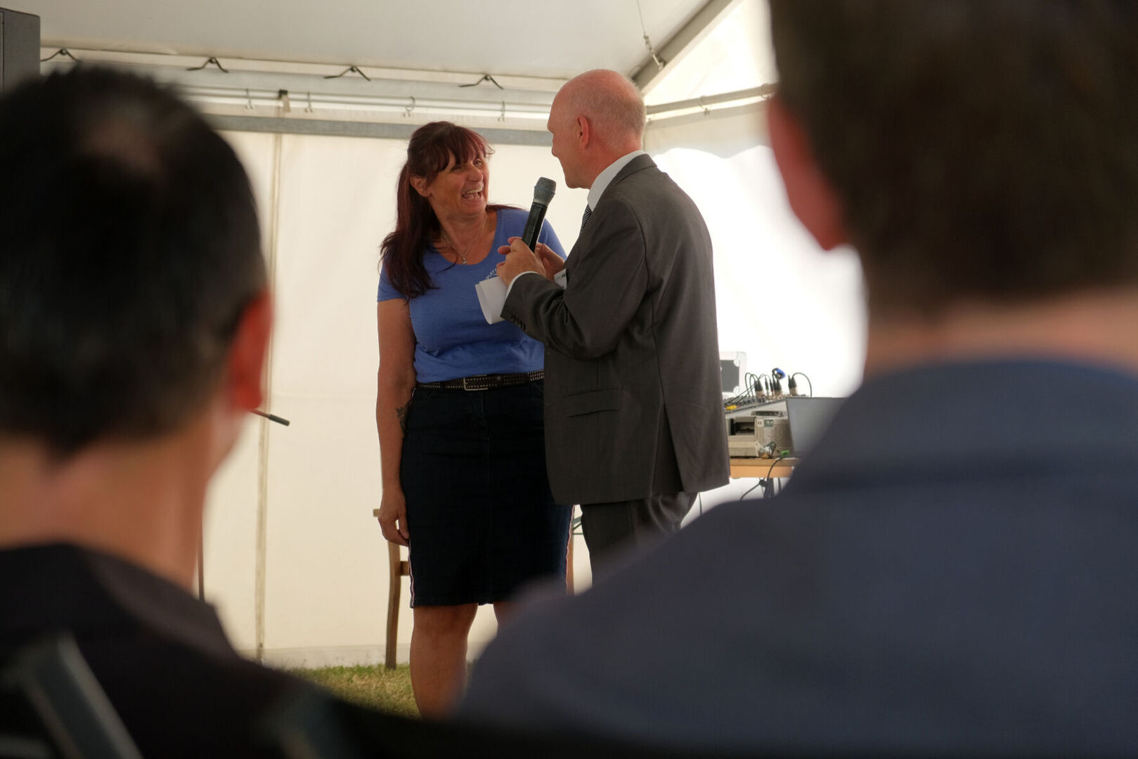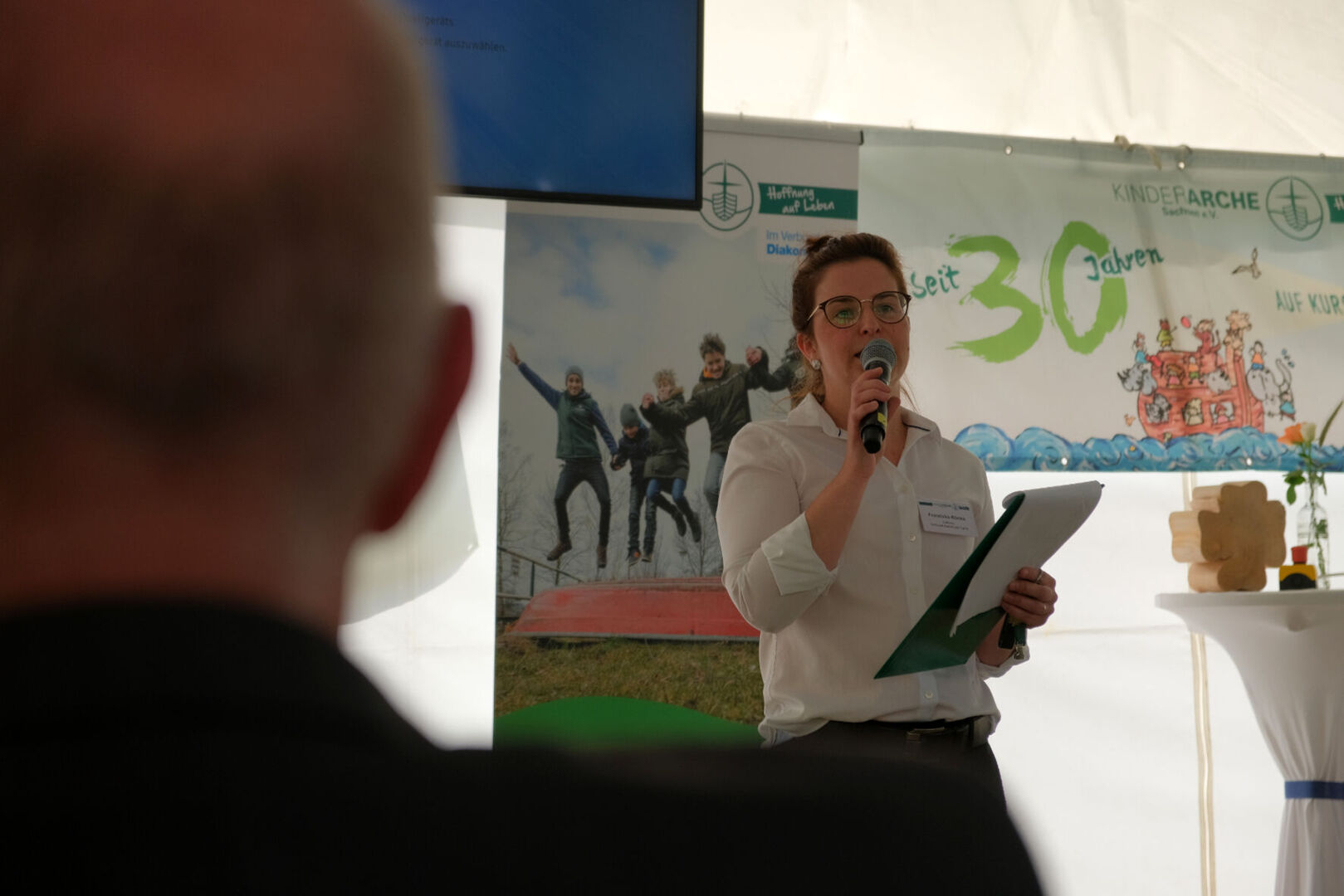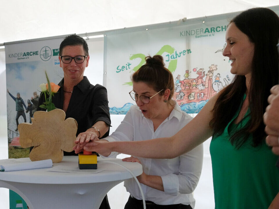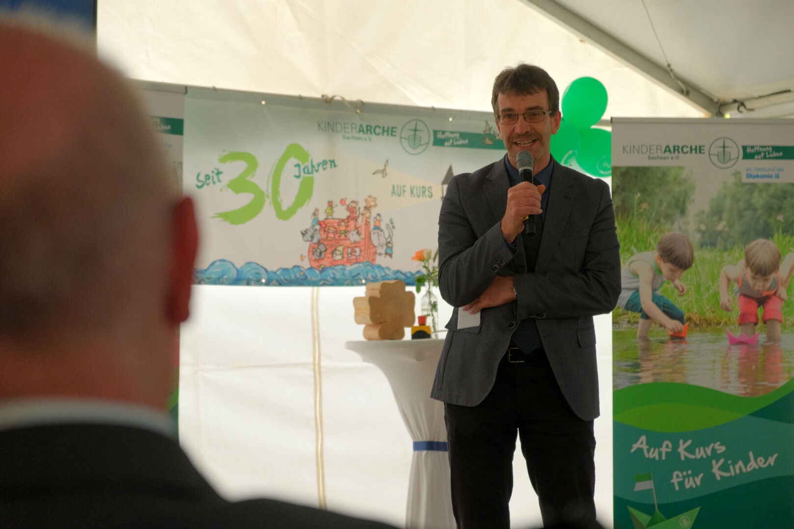 Was das Glück eigentlich ist und wie leicht wir es übersehen, davon erzählte die zehnjährige Sonya in der „Geschichte vom kleinen Glück“. Anschließend überbrachte Jörg Szewczyk, erster Beigeordneter des Landkreises Bautzen, seine Glückwünsche und lobte die Arbeit der Kinderarche Sachsen im Kreis. „Ein starkes Schiff, ein mutiger Kapitän, ein sicherer Ort für Kinder“ – so beschrieb Monique Petzold, Jugendamtsleiterin des Kreises, das „Haus Kleeblatt“ in ihrem Grußwort und dankte den Mitarbeitenden für ihre engagierte Arbeit.
