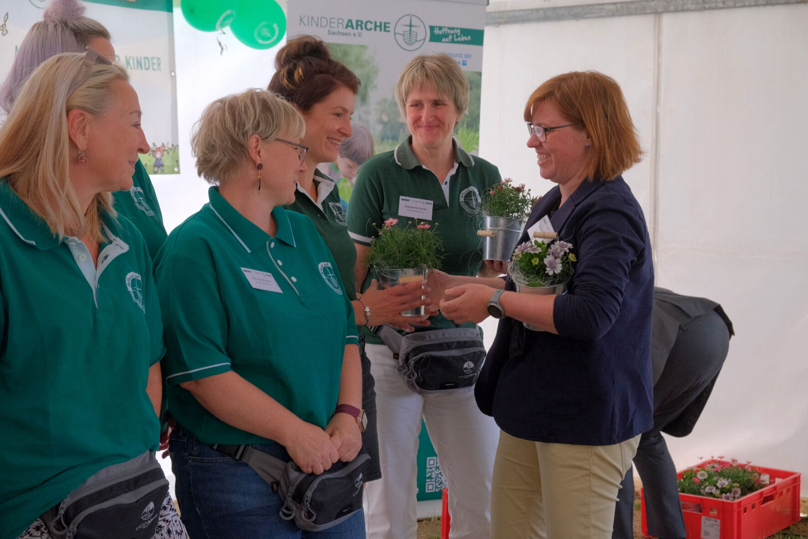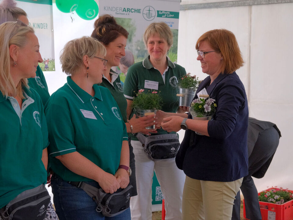 Tatsächlich kann Heimerziehung nur gelingen, wenn sich Menschen mit Herz, Verstand und großer Leidenschaft Tag für Tag für die jungen Menschen einsetzen, und so dankten Matthias Lang, Frank Lenz, Susan Gebhardt und Barbara Gärtner vom Kinderarche-Leitungsteam allen Kolleginnen und Kollegen mit einem Blumengruß.