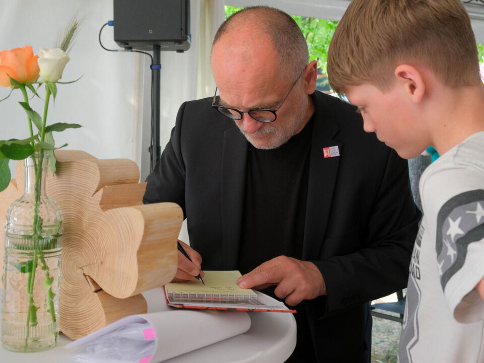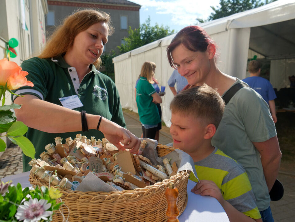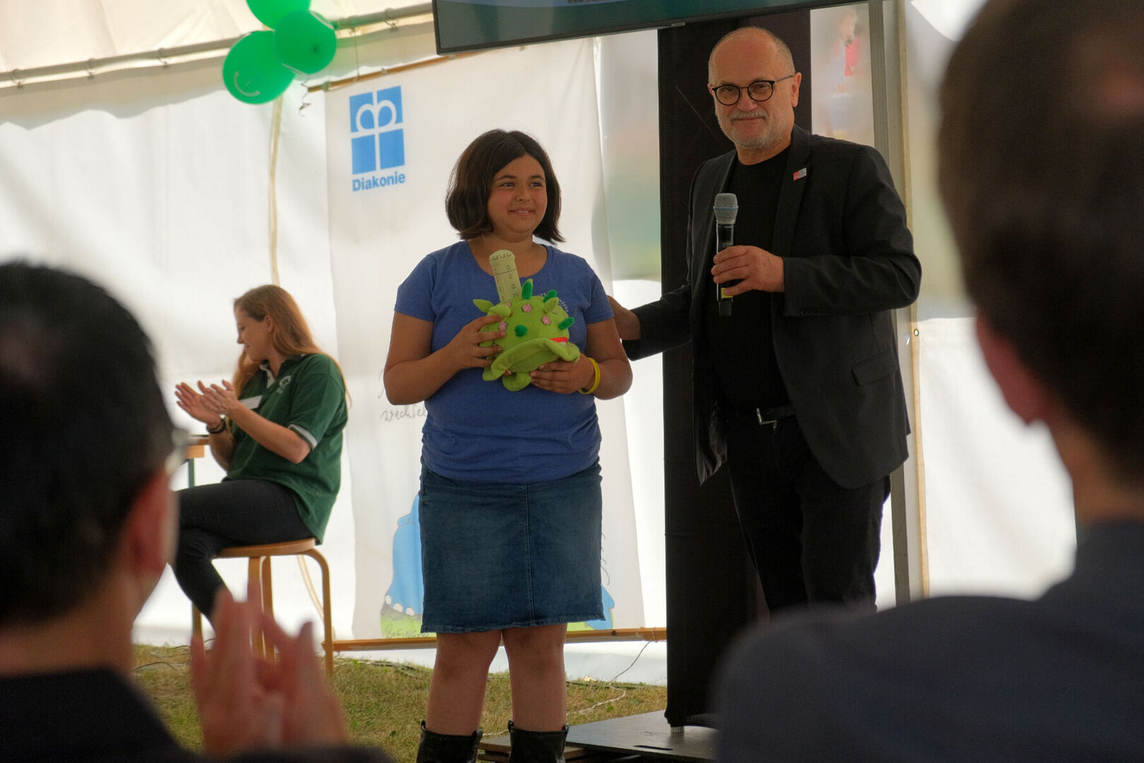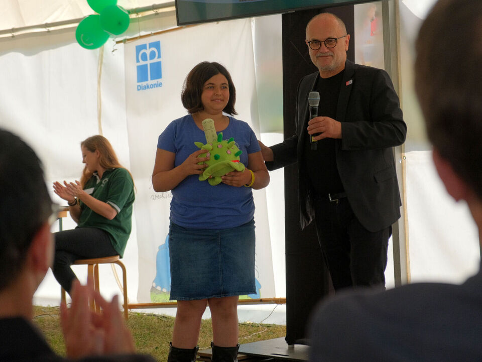 Zum Abschluss des offiziellen Teils überbrachte der Kamenzer Oberbürgermeister Roland Dantz seine guten Wünsche und drückte seine Hochachtung vor der Arbeit der Pädagogen aus. Er hatte das Kamenzer Maskottchen mit und übergab es stellvertretend für die Kinder und Jugendlichen vom „Haus Kleeblat“ an Sonya. Mit dem Lied „Wir ziehen in den Frieden“ von Udo Lindenberg sorgten die Kinder und Erzieher für Gänsehaut und einen Moment der Nachdenklichkeit, ehe es in den bunten Trubel des Nachmittags ging.