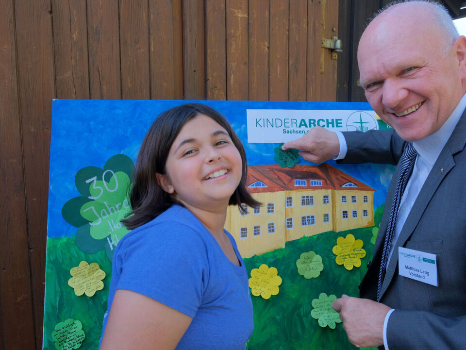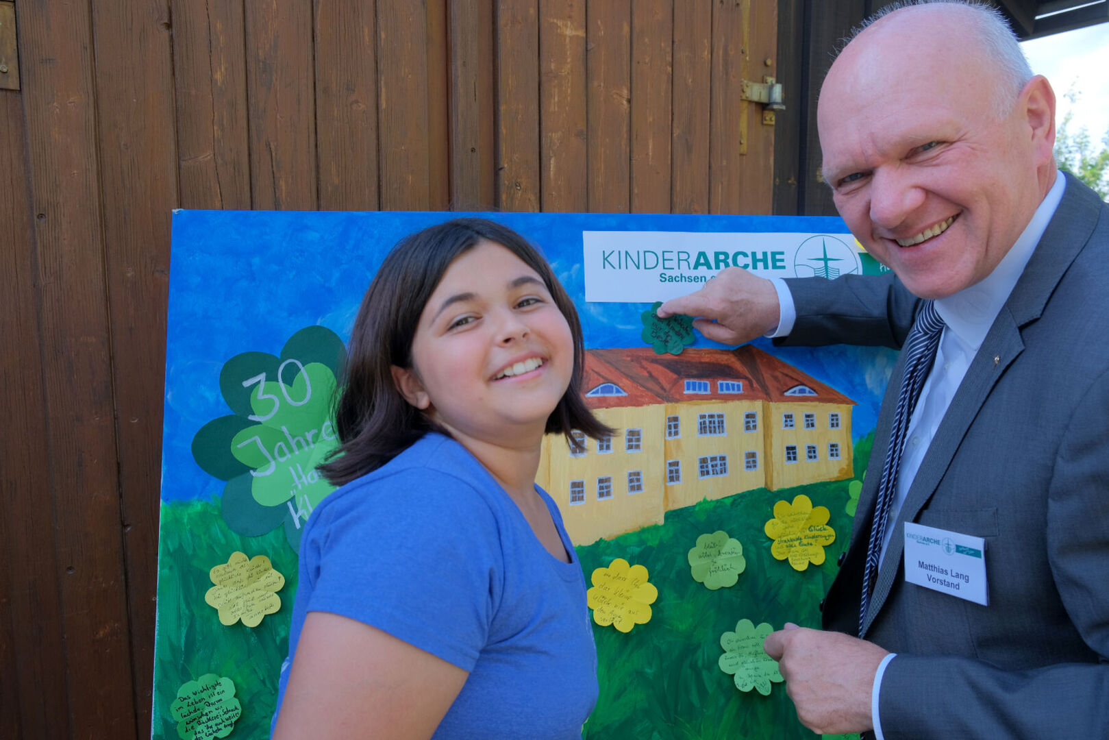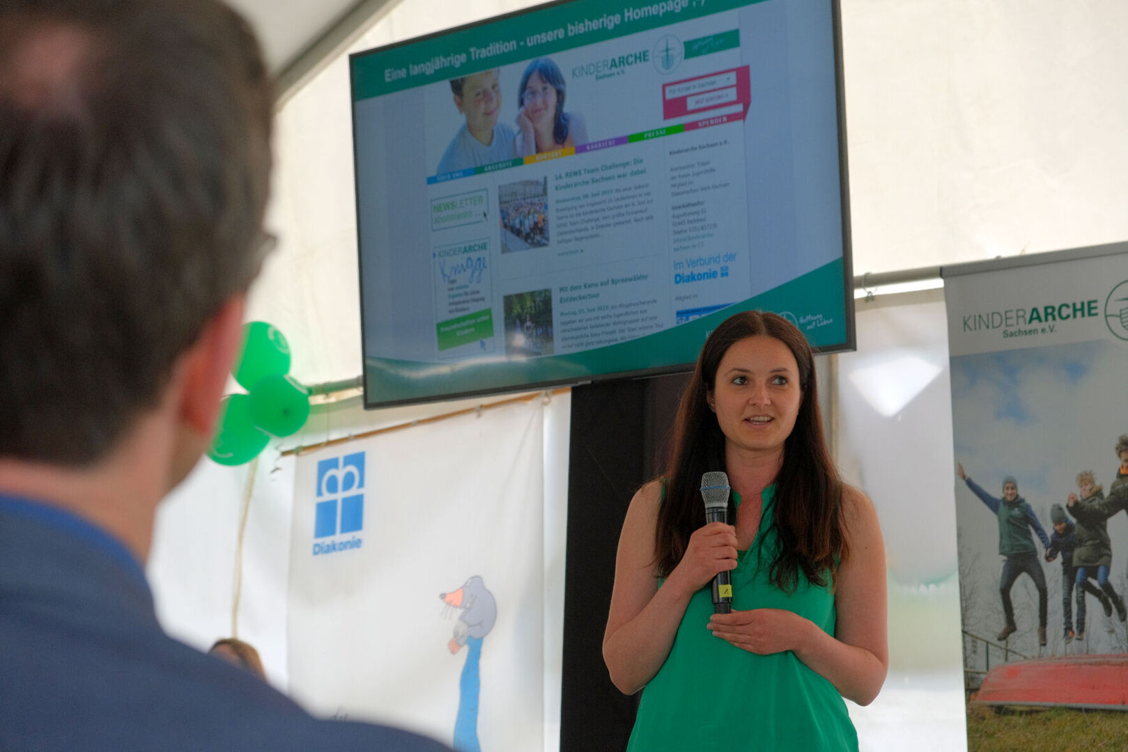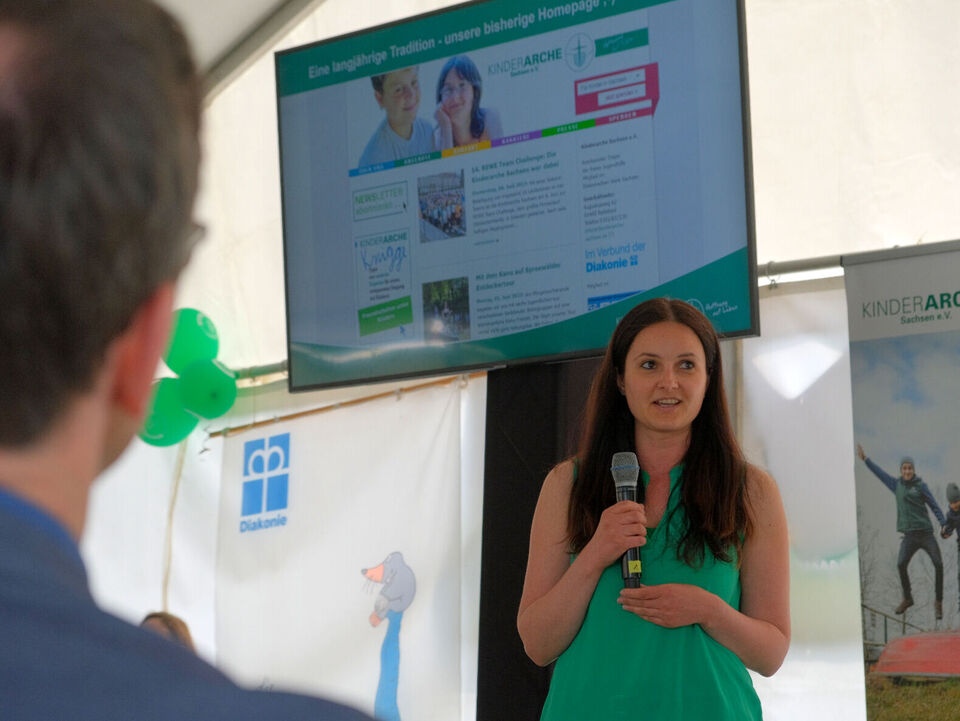 „Neben Traditionen ist aber auch Entwicklung und Innovation gefragt, um nicht stehen zu bleiben.“ Mit diesen Worten übergab Einrichtungsleiterin Franziska Bönke das Wort an Kinderarche-Vorstand Matthias Lang, der von der langjährigen Partnerschaft der Kinderarche mit einem ukrainischen Kinderheim berichtete und Oleksandra nach vorn bat. Sie war als 15-Jährige vier Monate zu einem Bildungsaufenthalt in der Kinderarche in Radebeul – und ist seitdem das Gesicht der Kinderarche im Internet, denn ein Foto von ihr und einem ukrainischen Jungen war 13 Jahre lang im Kopfbereich der Homepage zu sehen.