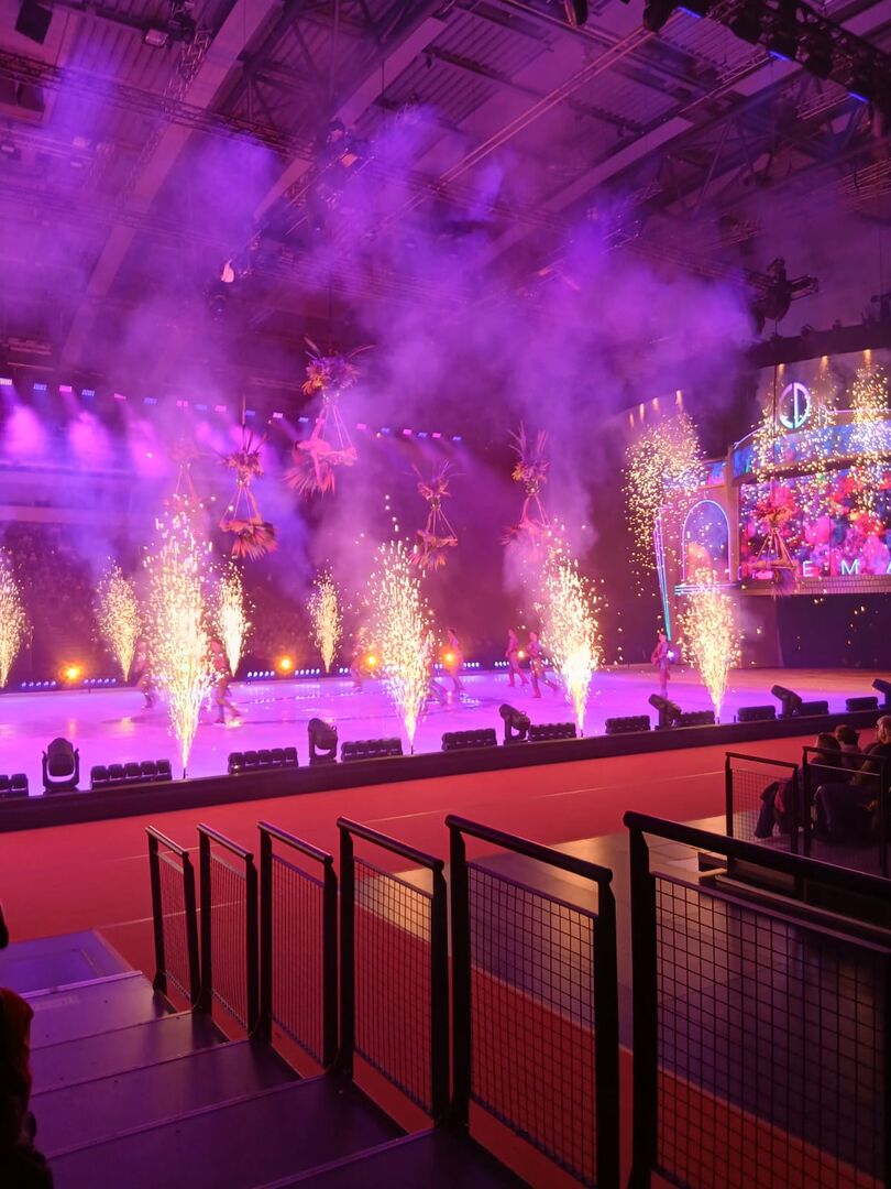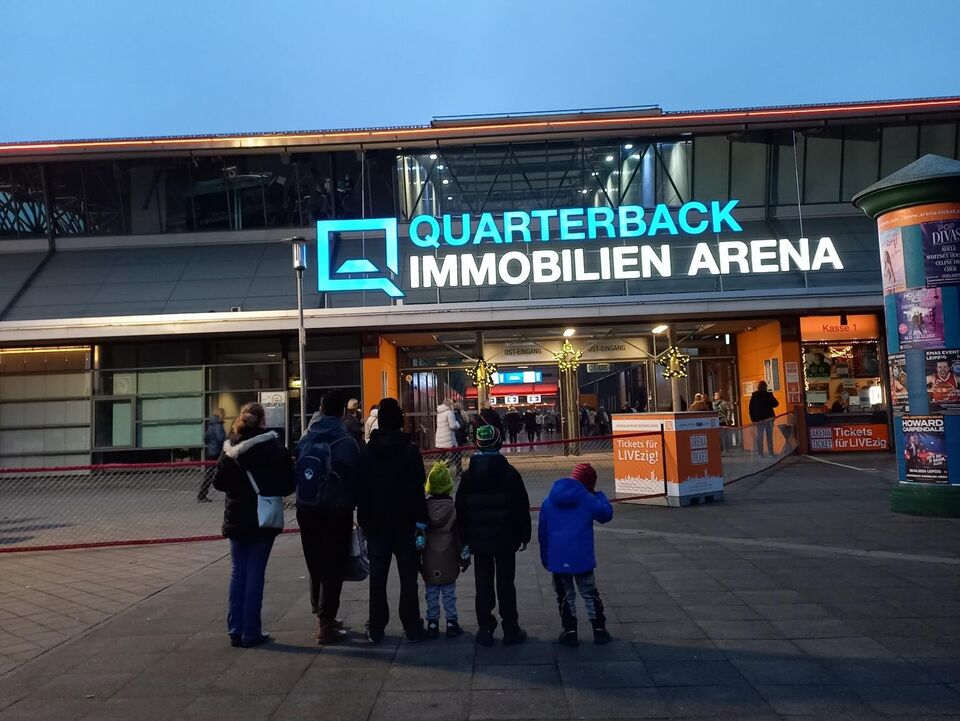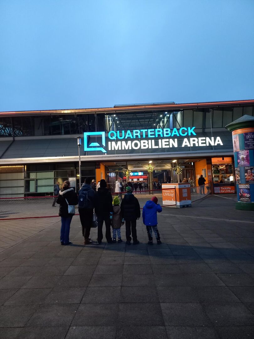 Auf dem Weg zu Fuß vom Marktplatz zur Arena liefen wir gemeinsam mit unzähligen RB-Fans, da ausgerechnet an diesem Tag auch noch ein Spiel stattfand. Für unsere Fußballbegeisterten der Gruppe war dies noch ein zusätzliches kleines Highlight. An der Arena angekommen, trennten sich unsere Wege von den Fans, und wir betraten die Halle mit der großen Eisfläche in der Mitte. Die Musik lief bereits, und der letzte Gong rief alle Gäste, denn die Show sollte nun endlich beginnen.