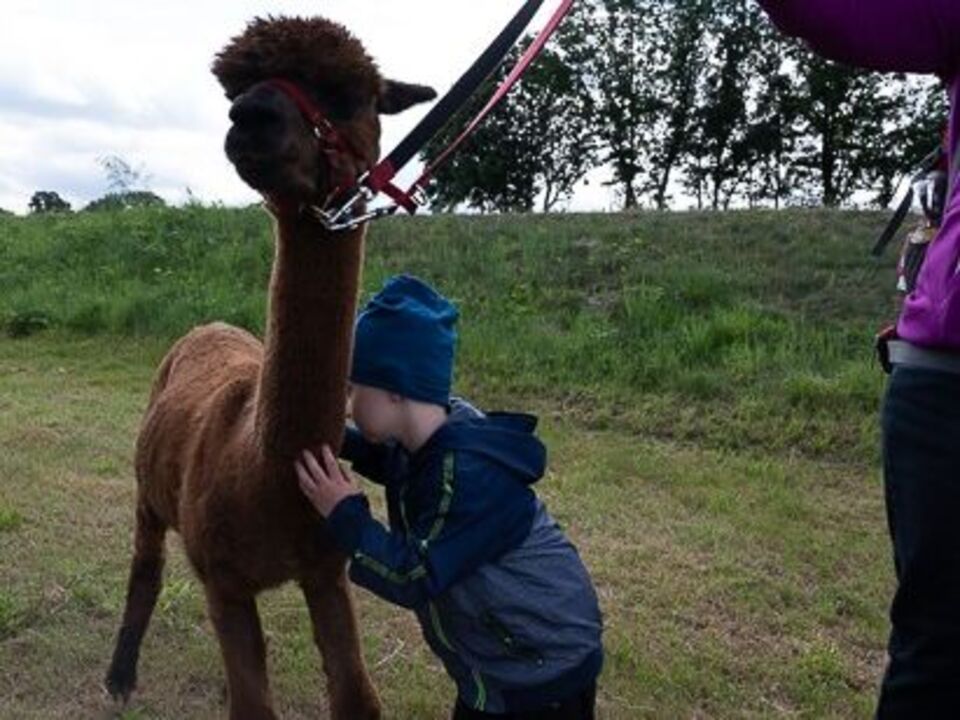 Wir nutzen neben der Reittherapie die vierbeinigen Freunde in vielerlei Hinsicht: regelmäßige Besuche oder Tagesausflüge mit Kindern und/oder Familien in einen Tierpark (Zoo), Fütterführungen (z.B. empfehlenswert im Zoo Zittau), Alpakawanderungen, diverse Hofbesuche und seit neustem Spaziergänge mit dem Hund einer unserer Mitarbeiterinnen (mit Ausbildung in Tiergestützter Interaktion - TGI).