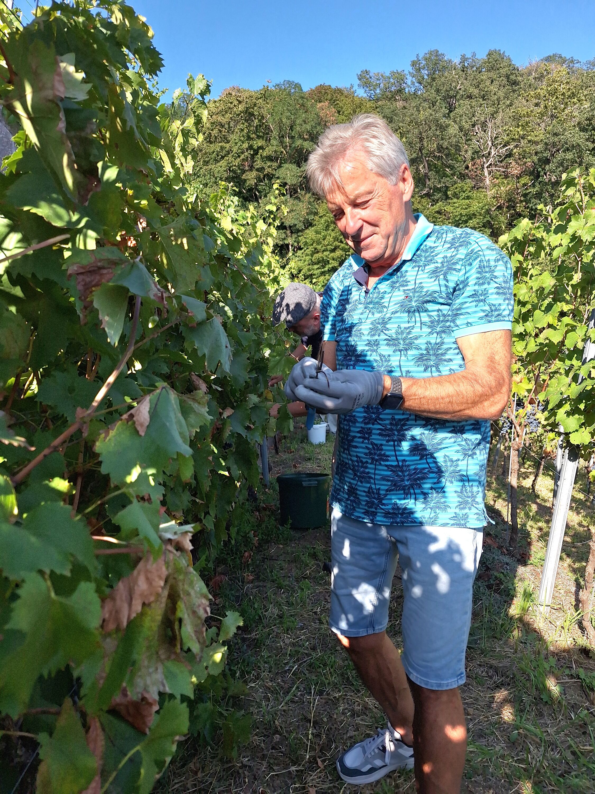 Nächste Woche folgt dann Teil 2 der Weinlese, wenn die roten Cabernet Cortis-Trauben gelesen werden, eine Woche später folgen dann noch die Johanniter-Traube von den insgesamt 500 Stöcken im Weinberg hinter dem Haus. Diese werden mit professioneller Unterstützung zu Wein ausgebaut und als Geschenk für Freunde und Förderer der Kinderarche Sachsen verwendet.