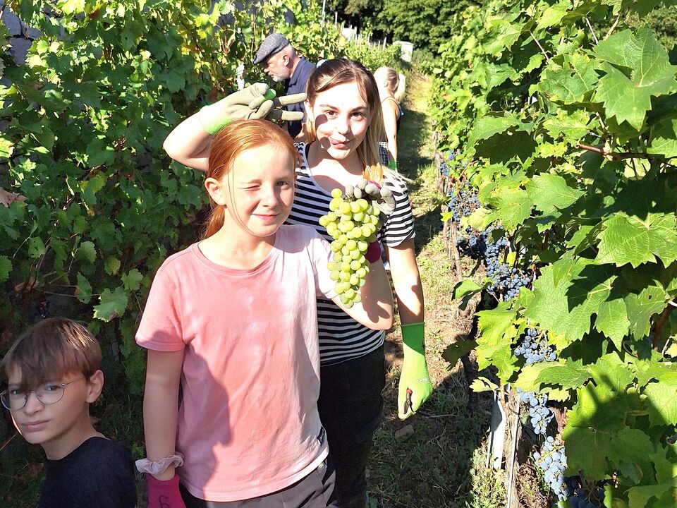 Nächste Woche folgt dann Teil 2 der Weinlese, wenn die roten Cabernet Cortis-Trauben gelesen werden, eine Woche später folgen dann noch die Johanniter-Traube von den insgesamt 500 Stöcken im Weinberg hinter dem Haus. Diese werden mit professioneller Unterstützung zu Wein ausgebaut und als Geschenk für Freunde und Förderer der Kinderarche Sachsen verwendet.
