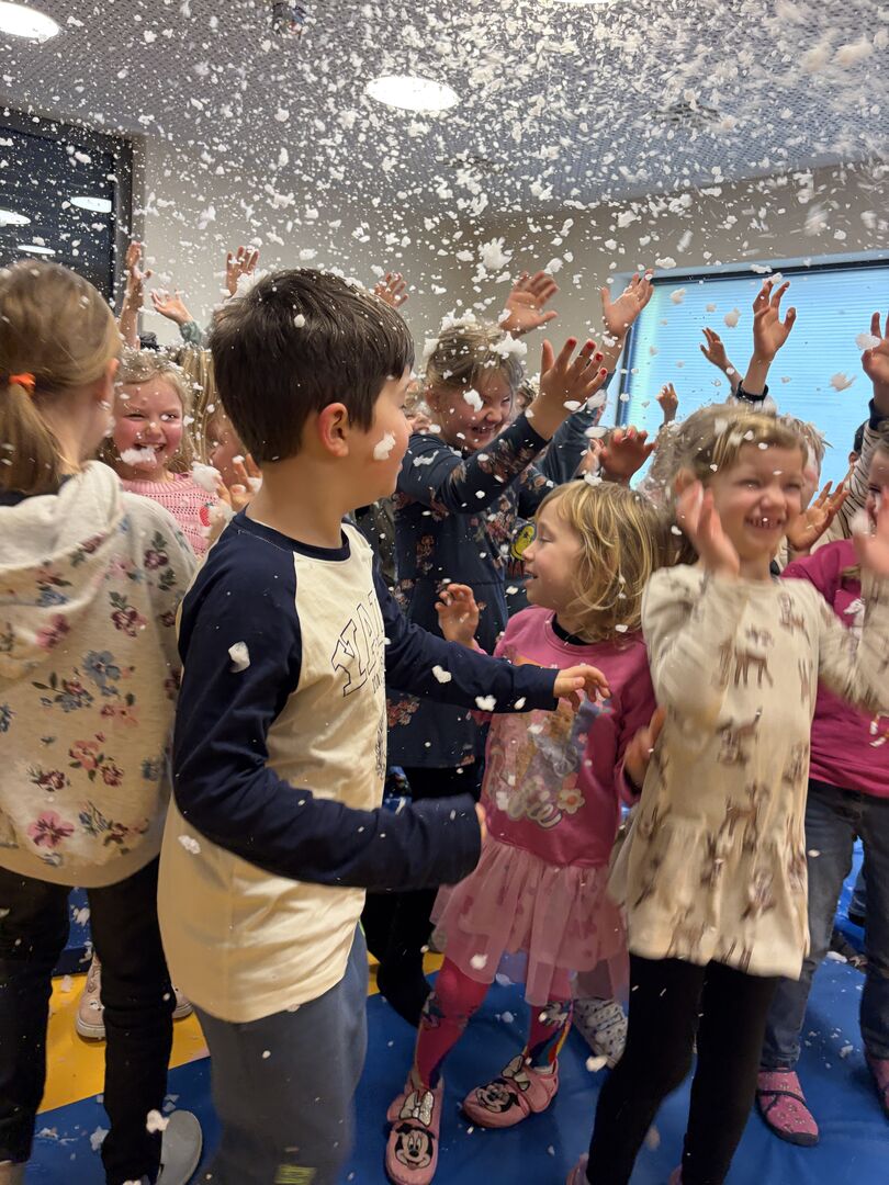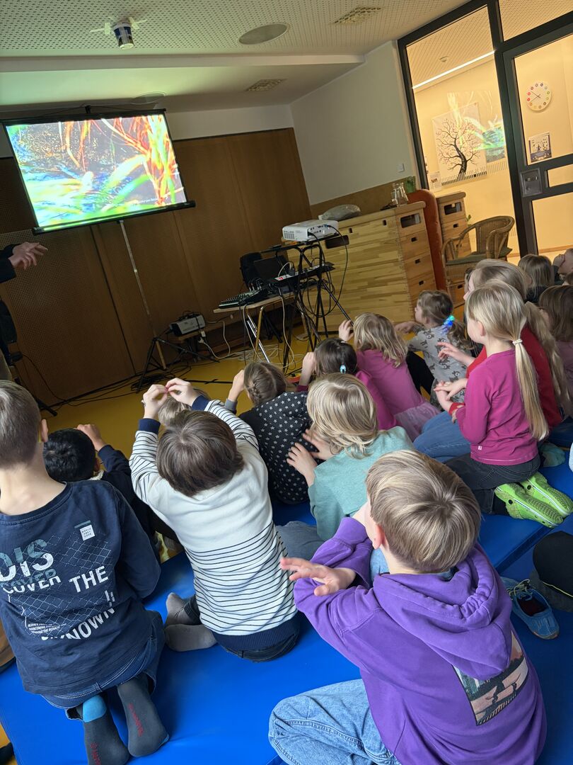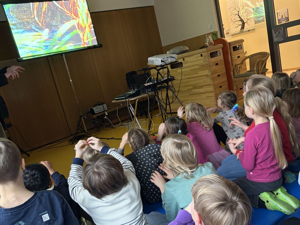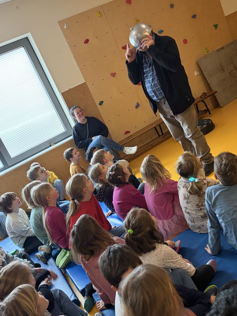 Ein ganz besonderer Gast besuchte uns schon zu Beginn der Ferien. Herr Meister, der schon viele tolle „Meister-Werke“ unseren Kindern aus Krippe und Kindergarten zeigte und alle immer wieder zum Staunen brachte, hatte an diesem Tag ein Stück für die Hortkinder in seinem Koffer. „Die Moldau“, welches mit großer Sicherheit viele Eltern aus Ihrer Schulzeit kannten, wurde noch einmal von Herr Meister ganz praktisch neu interpretiert. Mit verschiedenen Effekten aus Alltagsdingen aber eben auch moderner Technik wurde das bekannte Stück den Kindern neu aufgezeigt. Zum Schluss gab es für alle einen „Schneefall“ der ganz besonderen Art. Und spätestens hier war für alle Kinder klar, Herr Meister, sie dürfen wieder kommen.