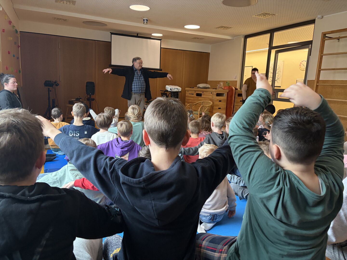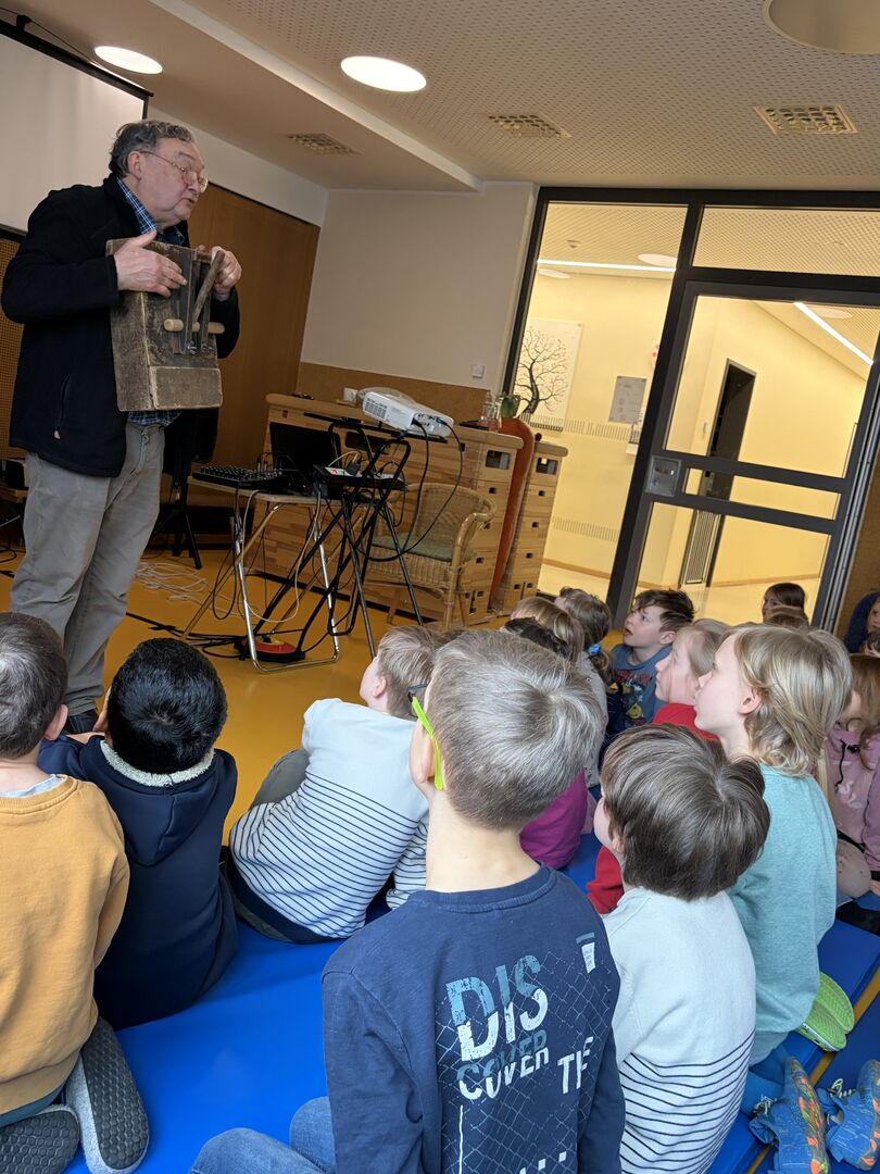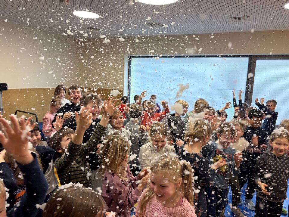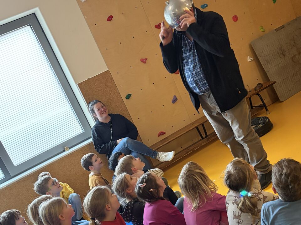 Ein ganz besonderer Gast besuchte uns schon zu Beginn der Ferien. Herr Meister, der schon viele tolle „Meister-Werke“ unseren Kindern aus Krippe und Kindergarten zeigte und alle immer wieder zum Staunen brachte, hatte an diesem Tag ein Stück für die Hortkinder in seinem Koffer. „Die Moldau“, welches mit großer Sicherheit viele Eltern aus Ihrer Schulzeit kannten, wurde noch einmal von Herr Meister ganz praktisch neu interpretiert. Mit verschiedenen Effekten aus Alltagsdingen aber eben auch moderner Technik wurde das bekannte Stück den Kindern neu aufgezeigt. Zum Schluss gab es für alle einen „Schneefall“ der ganz besonderen Art. Und spätestens hier war für alle Kinder klar, Herr Meister, sie dürfen wieder kommen.