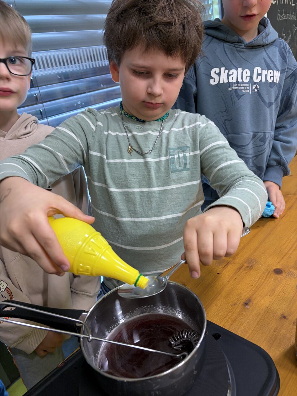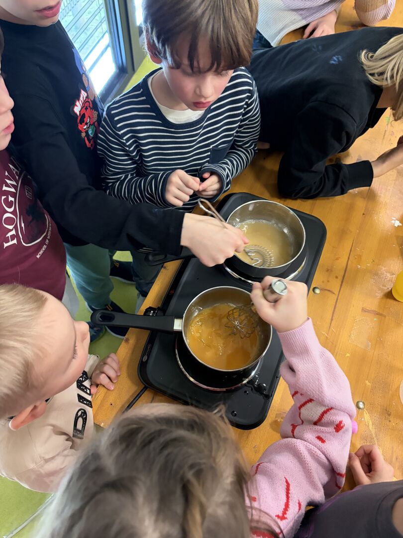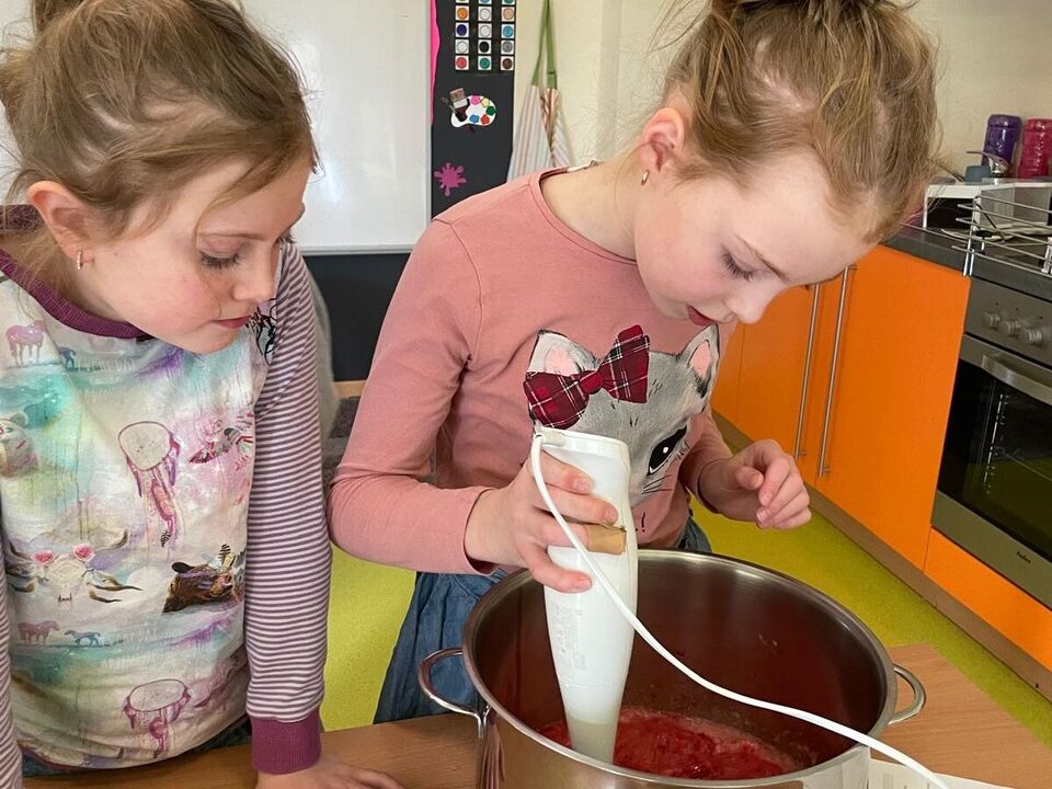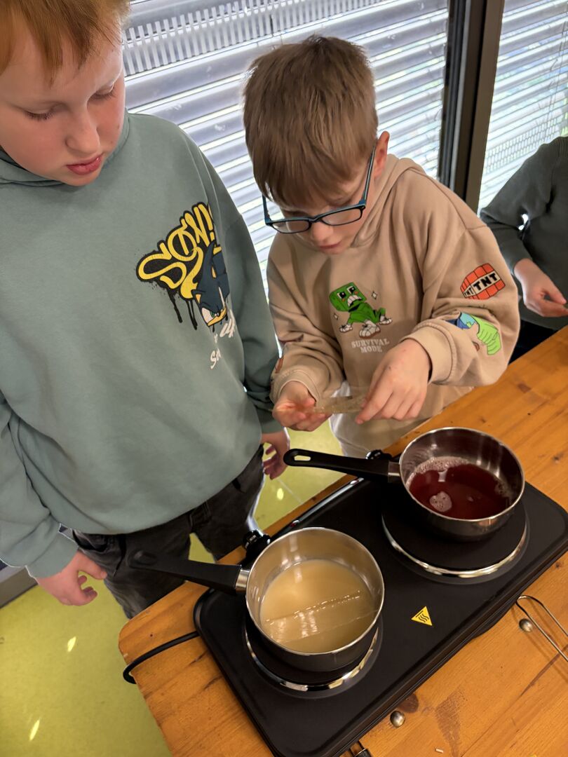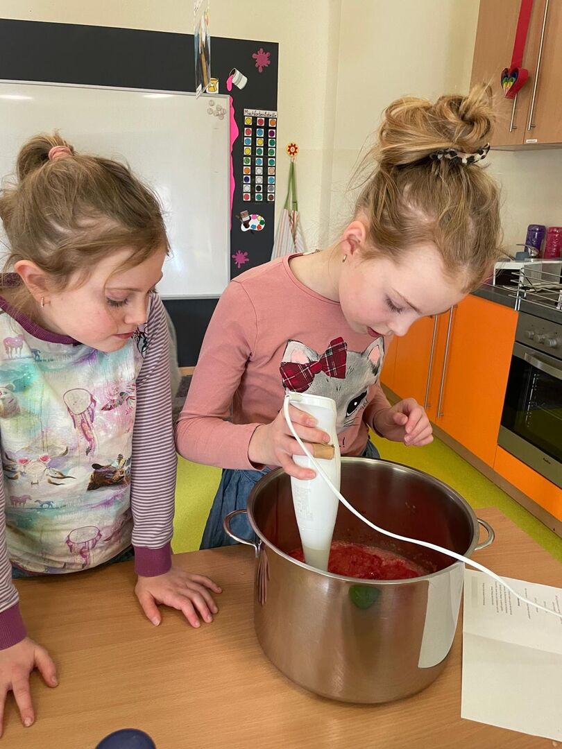 Parallel dazu lief im Stationsbetrieb auch in anderen Zimmern die Herde heiß. Denn neben selbstgemachtem Knäckebrot, einem gesunden selbstgebackenem Dinkelbrot und selbst hergestellten Gummibärchen gab es auch einen leckeren Smoothie aus Obst und Gemüse. Alles in allem ein wunderbar gelungener Tag der auch noch allen super schmeckte. Den gegessen wurde das Hergestellte dann natürlich auch.