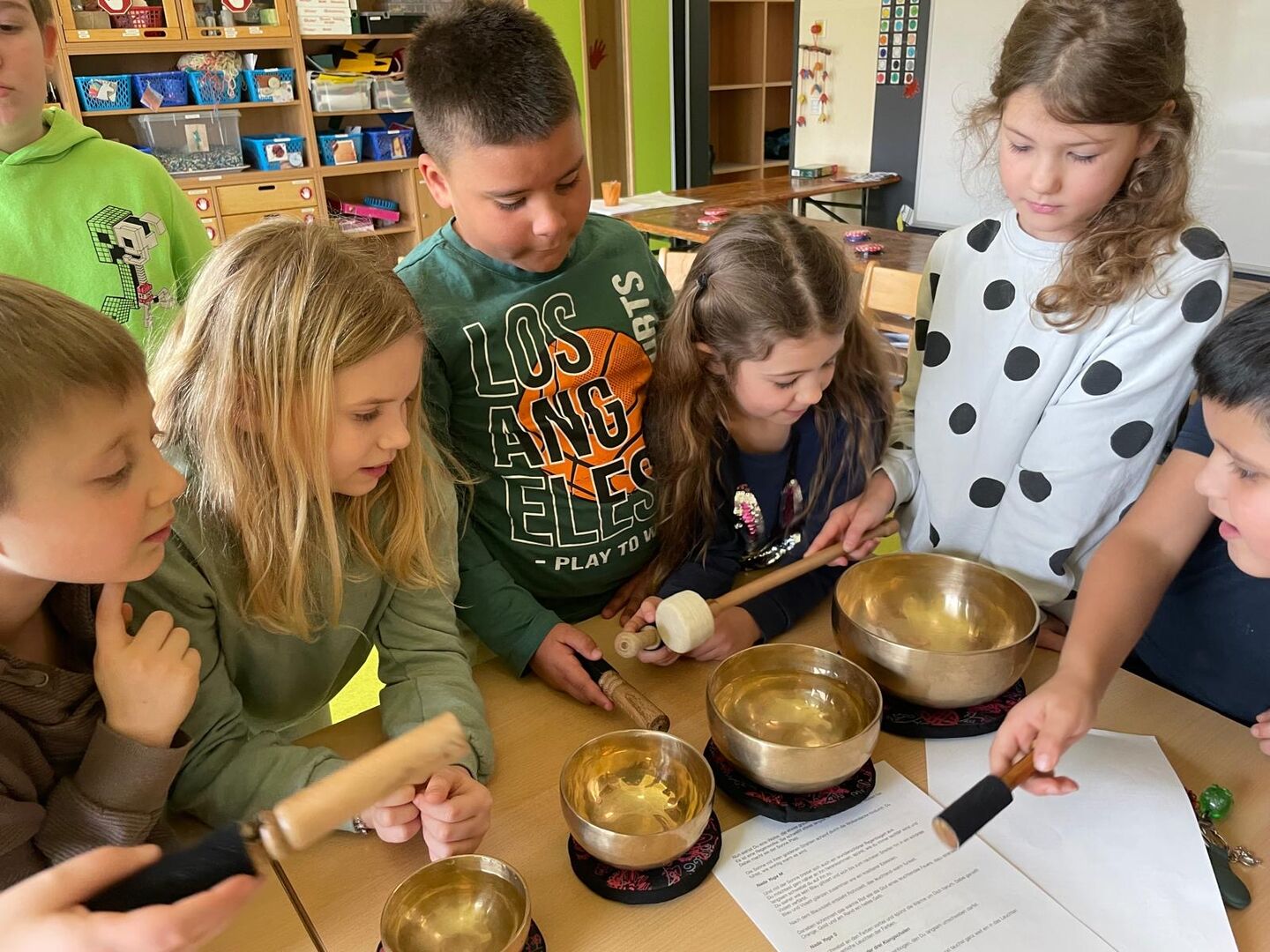 Der von vielen Kindern beliebte Sport-Vormittag in der Turnhalle der Sahnschule war ebenfalls wieder ein Teil der Ferien. Und neben viel Bewegung an frischer Luft an unseren Waldtagen fand auch ein Tag im Zeichen der Entspannung und Achtsamkeit statt. Hier fanden unsere Klangschalen wieder Ihren Einsatz, die von den Kindern sehr interessiert wahrgenommen worden sind.