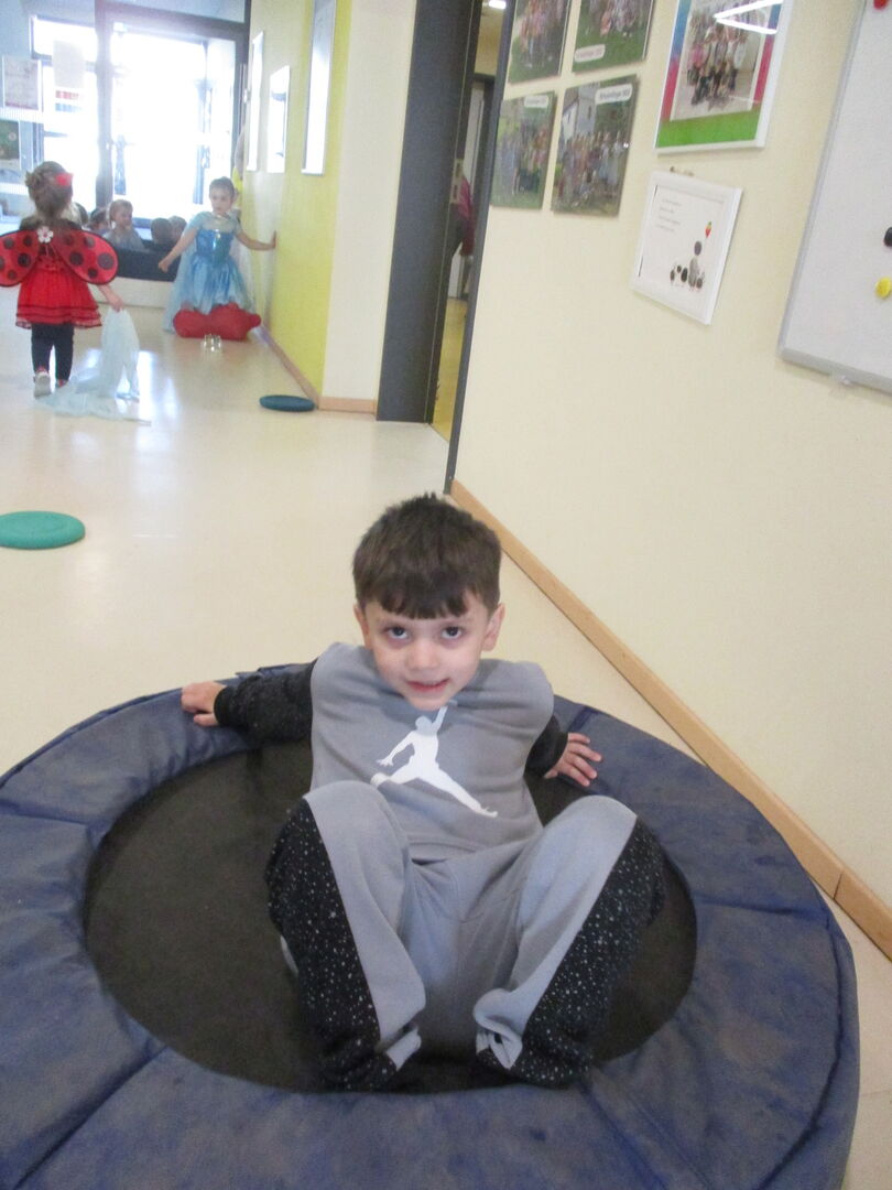 Zu Beginn der Faschingsparty bekamen unsere Kita-Kinder Besuch von der Hexe Baba Jaga. Anschließend erwartete die Kinder viele lustige Spiele für Groß und Klein. Mit viel Ausgelassenheit, Trubel und Freude flitzten die Kinder durch unseren großen Flur, in dem ein kleiner Parcour aufgebaut war, veranstalteten eine Stuhlpolonaise, tanzten zu Musik bei unserer Mini-Disko und dekorierten unsere Kita mit jeder Menge Klopapier, Luftballons und Papierschlangen. Besonders beliebt unter unseren Kleinsten waren das Bällebad und die Hüpftiere, auf denen sie ausgelassen durch die Räume hüpften.