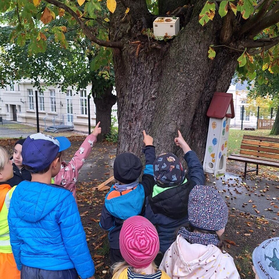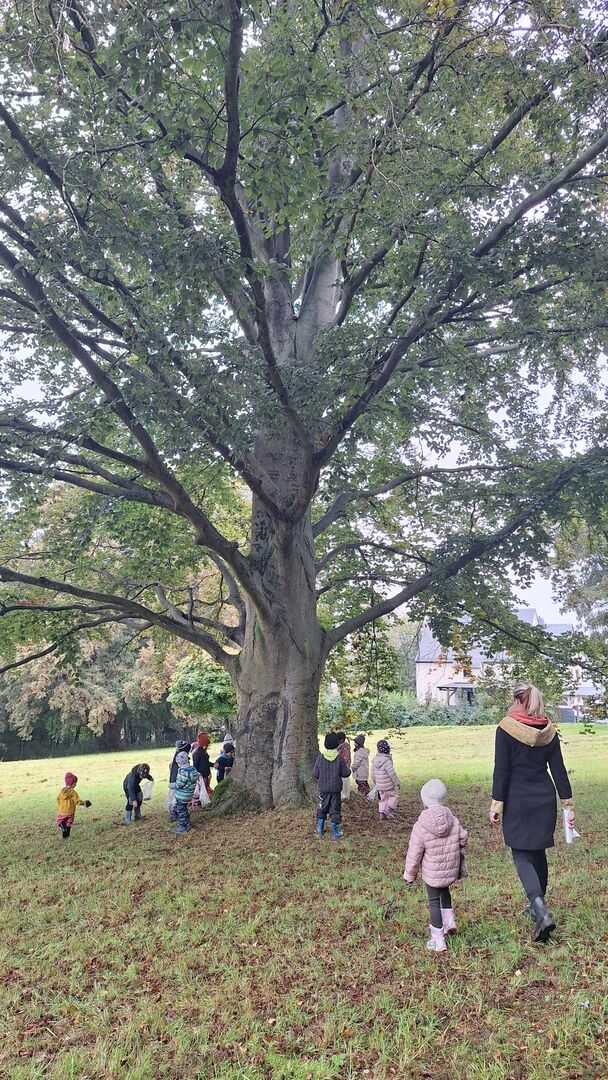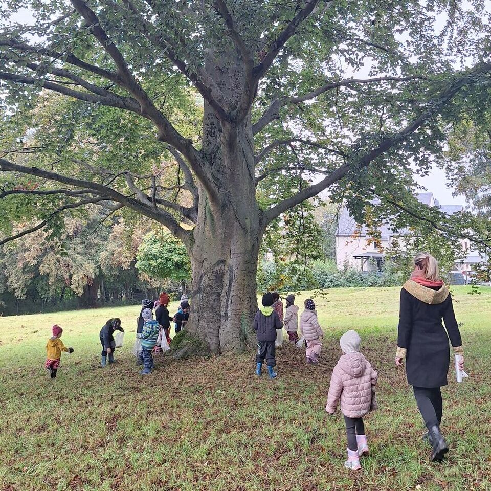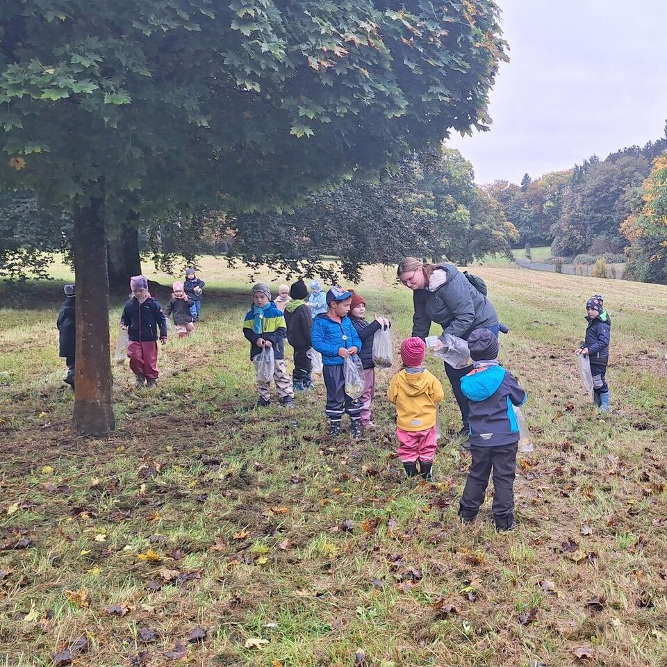 Am Mittwoch bekamen die großen „Sterntaler“ einen Brief vom kleinen Igel „Isidor“, welcher uns zu einer kleinen Herbstschatzsuche in den nahegelegenen „Krankenhauspark“ einlud. An verschiedenen Bäumen fanden die Kinder Briefe mit verschiedenen Aufgaben, deren Lösungen uns dem gut versteckten Schatz ein Stück näherbrachte. Letztendlich war die Schatztruhe in unserem großen Kastanienbaum im Kinderhaus versteckt, dessen Inhalt für Begeisterung bei den Kindern sorgte.