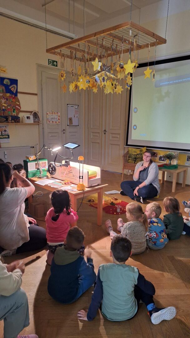 Die Woche begann mit einem großen Hausmorgenkreis, in welchem einige Kinder uns die Geschichte von der kleinen Waldmaus und dem Igel mit einem „Story- Board“ erzählten.
