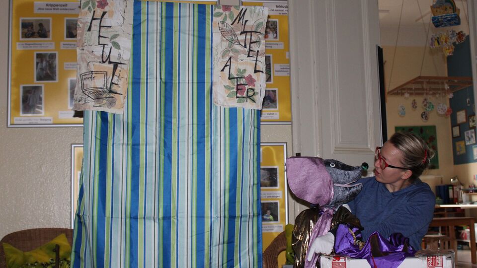 Gemeindepädagogin Annett Erler gestaltete großen Morgenkreis zum Thema "Fasching und Fastnacht"