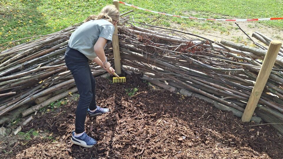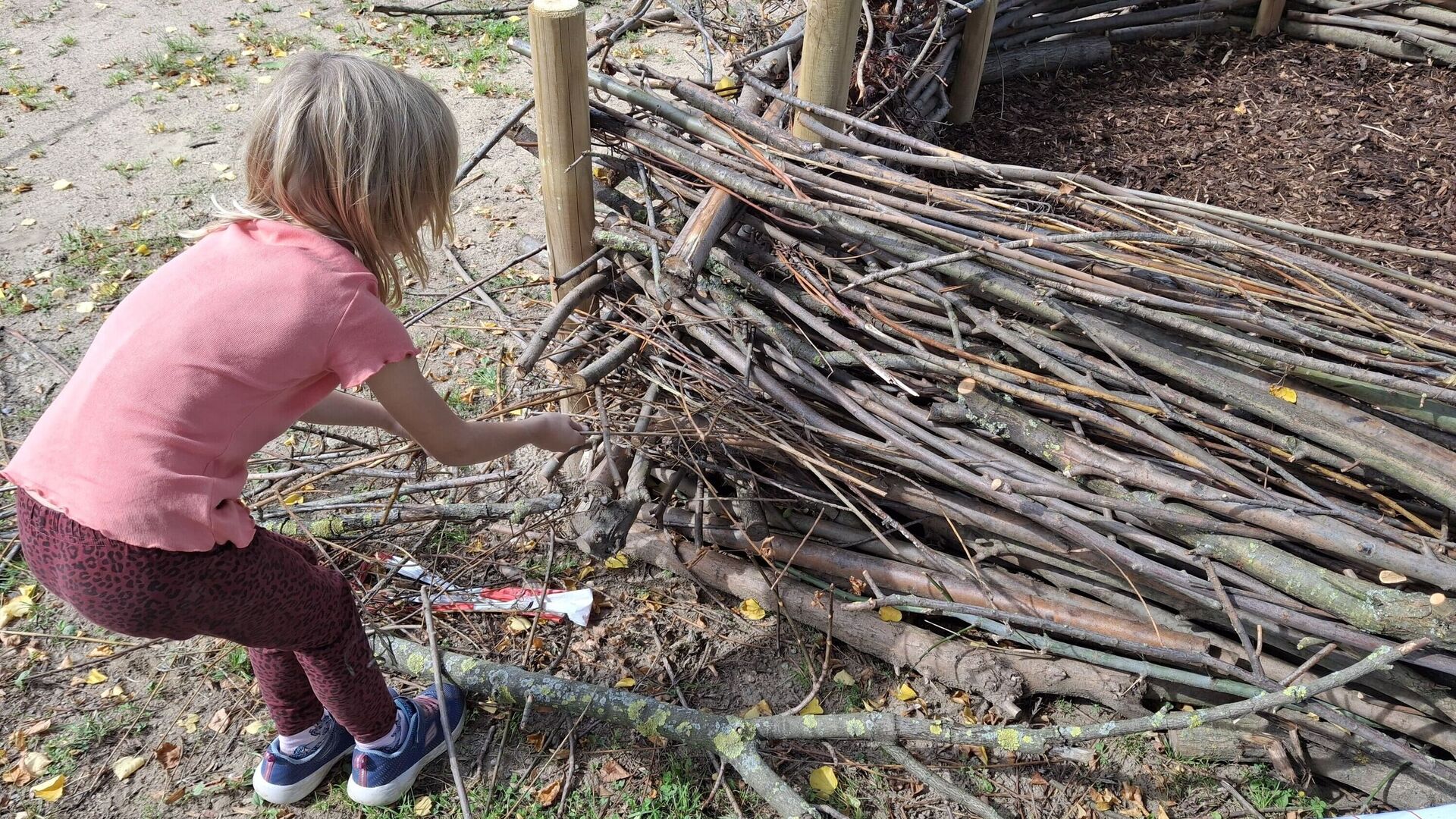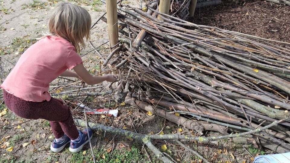 Recycling mal anders. Weiden und Astverschnitt müssen nicht immer in die Tonne! Man kann damit gleichzeitig das Außengelände etwas verschönern und neue Verstecke für die Kinder gestalten.