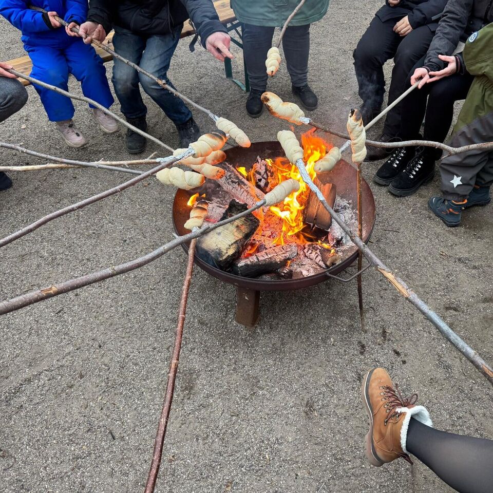 Danach gab es leckeren Knüppelkuchen am Lagerfeuer und Würstchen vom Grill – dank der Unterstützung vieler Eltern.
