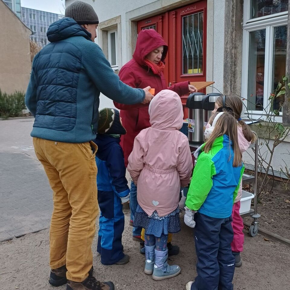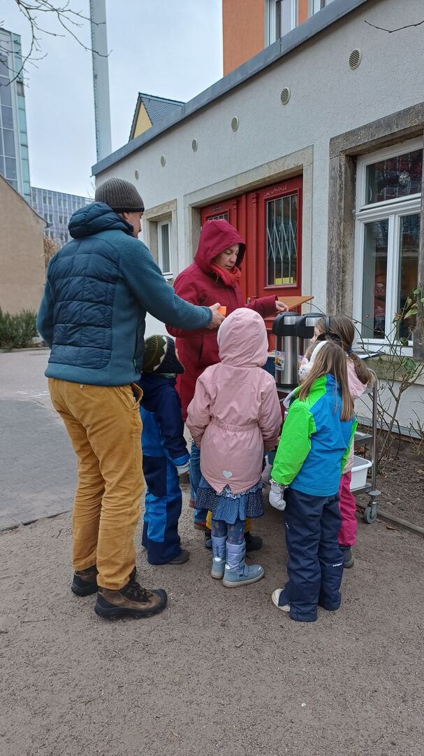 Mit einem wärmenden Kinderpunsch in der Hand sind gute Gespräche entstanden und trotz der Kälte war die Stimmung durchweg positiv.