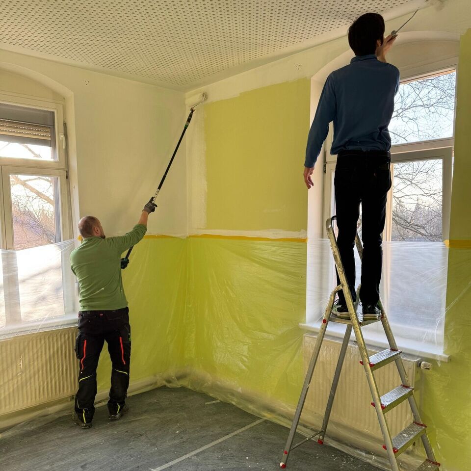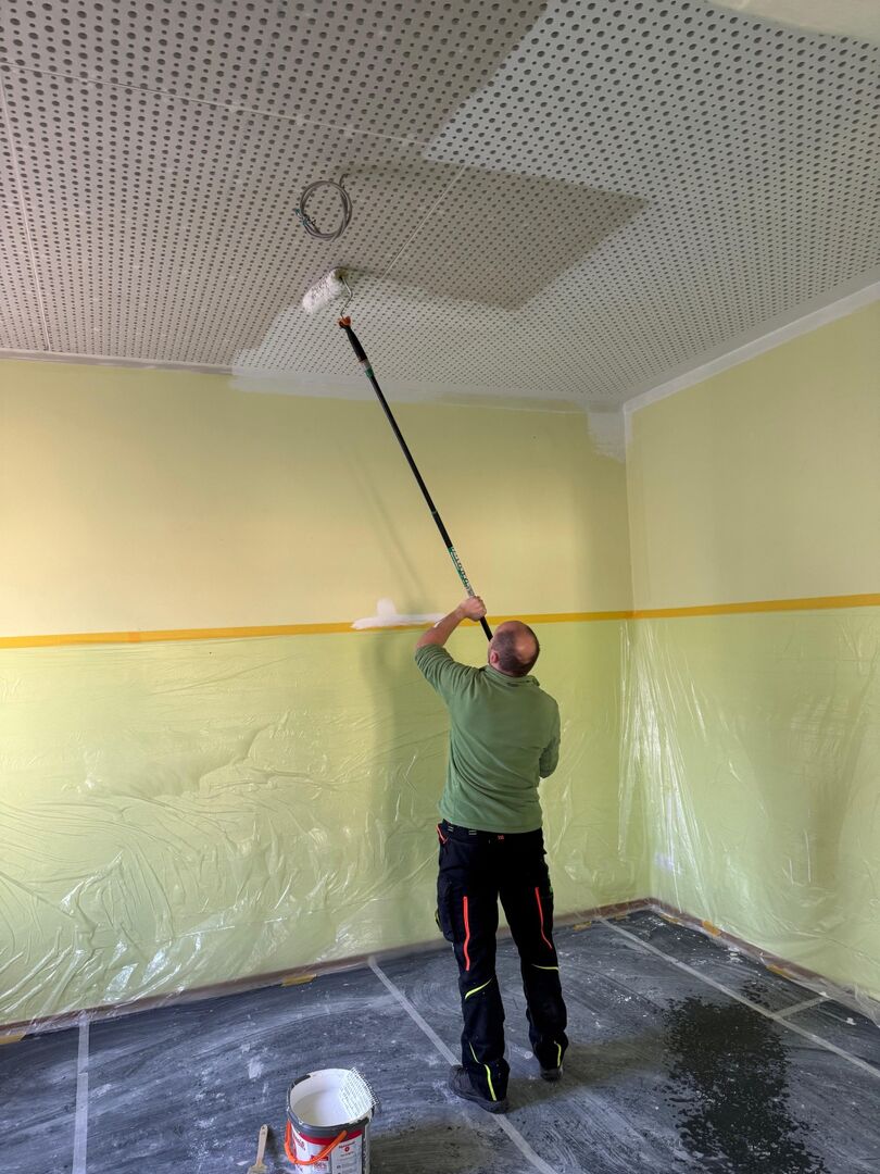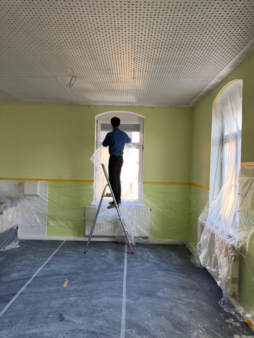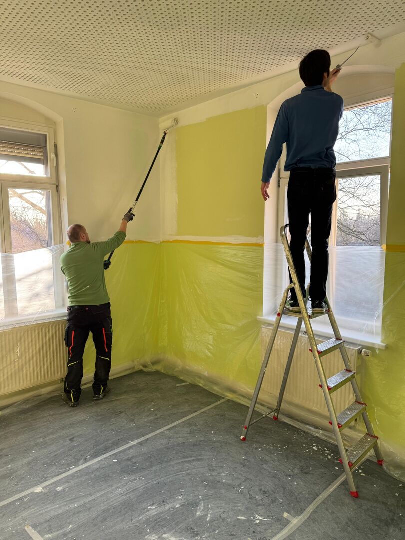 Mit großem Einsatz halfen uns außerdem engagierte Eltern, die beim Fertigstellen der Räume unterstützt haben. Es wurde abgeklebt, Decken und Wände  gestrichen, gereinigt und anschließend die Räume wieder eingeräumt – vielen Dank für diese tolle Hilfe!