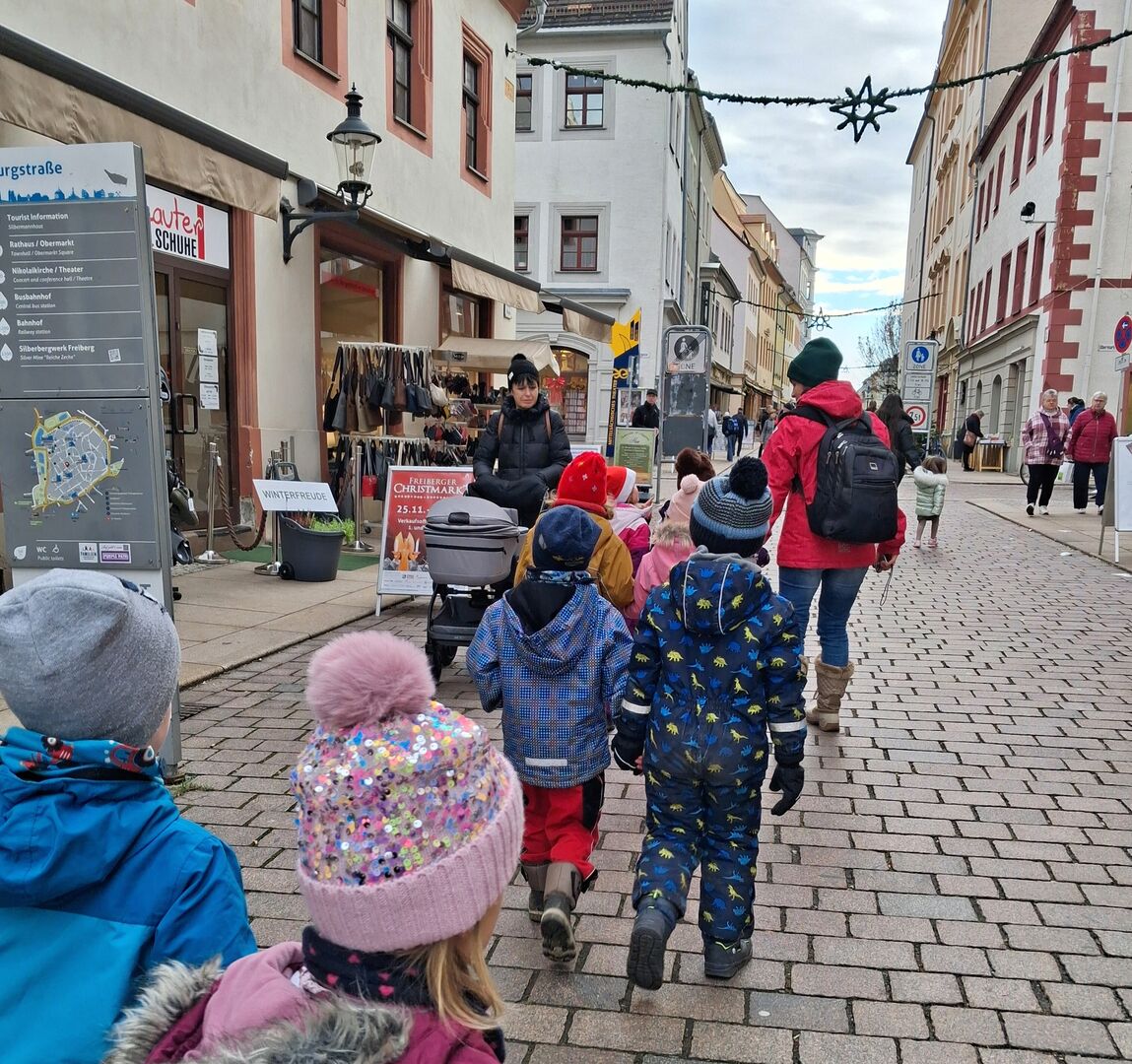 Mit dem Bus fuhren alle Kinder des Kinderhauses und das Team nach Freiberg. Für manche Kinder war es die erste Busfahrt und damit sehr aufregend.