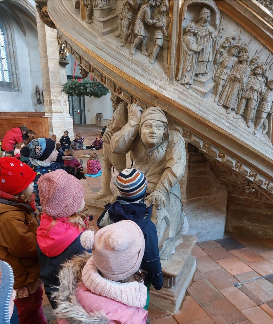 Im Freiberger Dom gibt es viel zu entdecken und zu bestaunen. Die Kinder staunten über die beiden Kanzeln mit den verschiedenen Figuren.