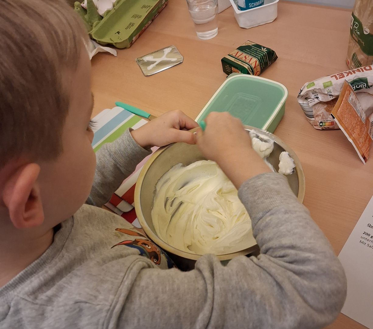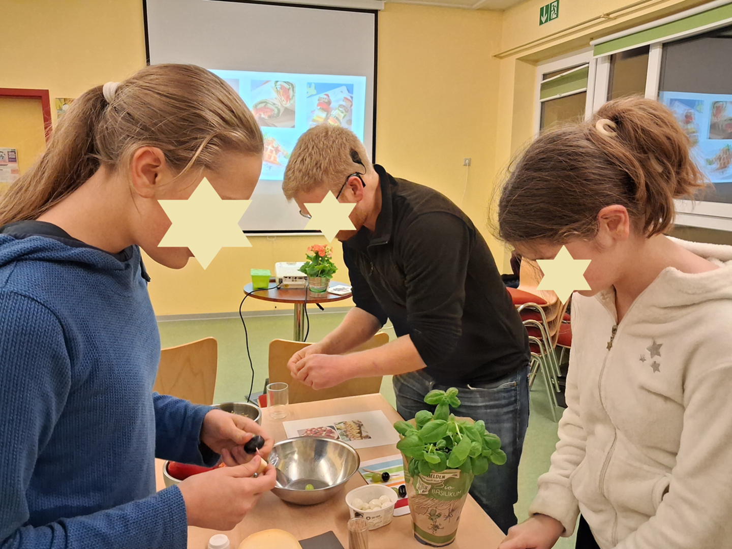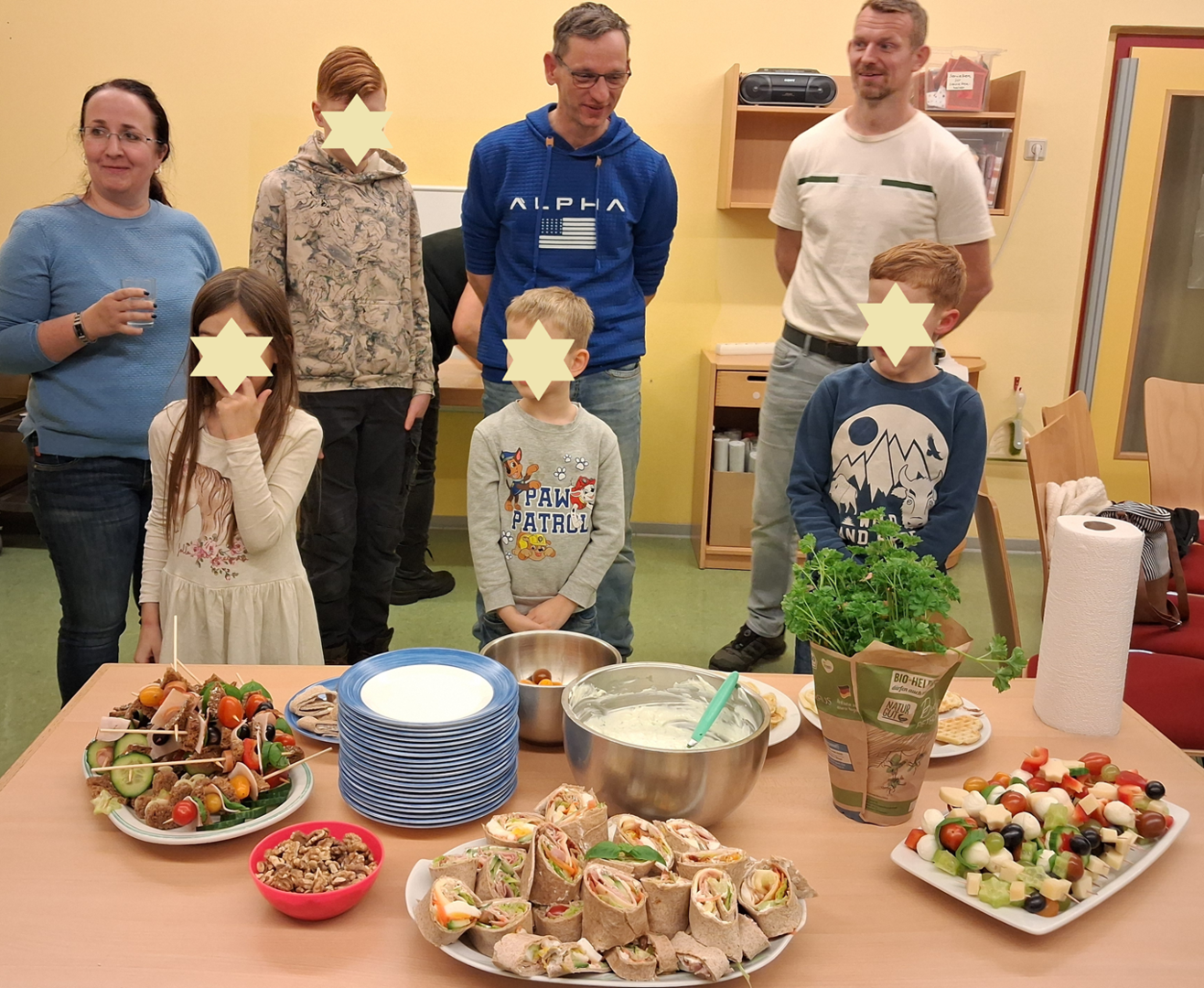 Gemeinsam stellten wir leckere Alternativen für die Brotdose oder Pausenbox her. Es wurde geschnippelt, aufgespießt, geschmiert und gerührt. Dabei entstanden Brotspieße, leckere Kräuterwaffeln mit Quarkdipp, verschiedene Wraps und Tomaten-Mozzarella-Spieße. Natürlich wurde alles verkostet und für lecker befunden!
