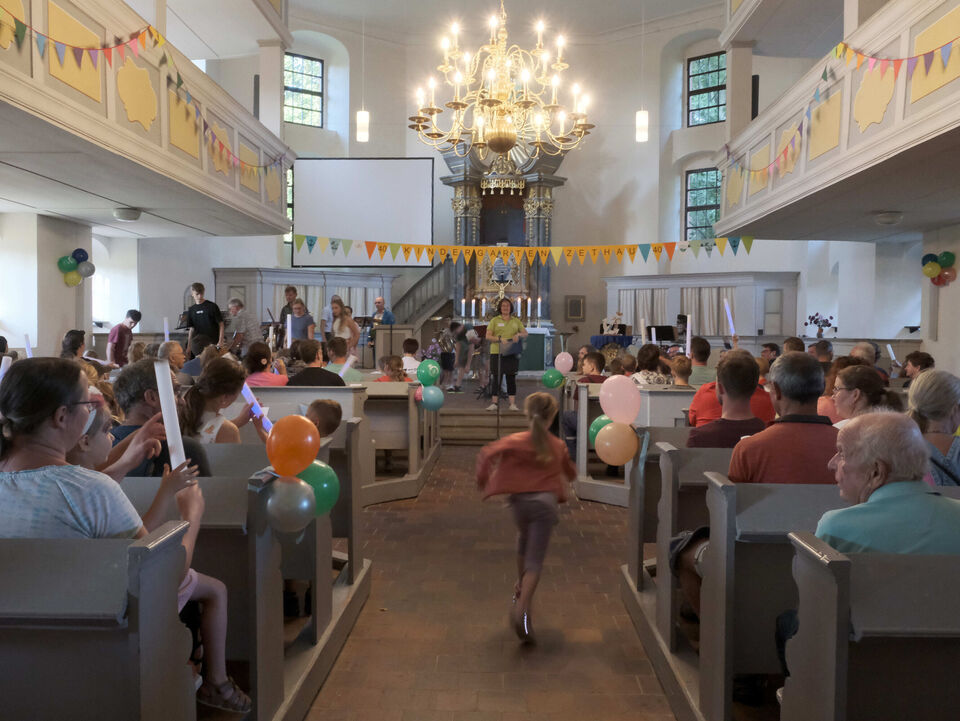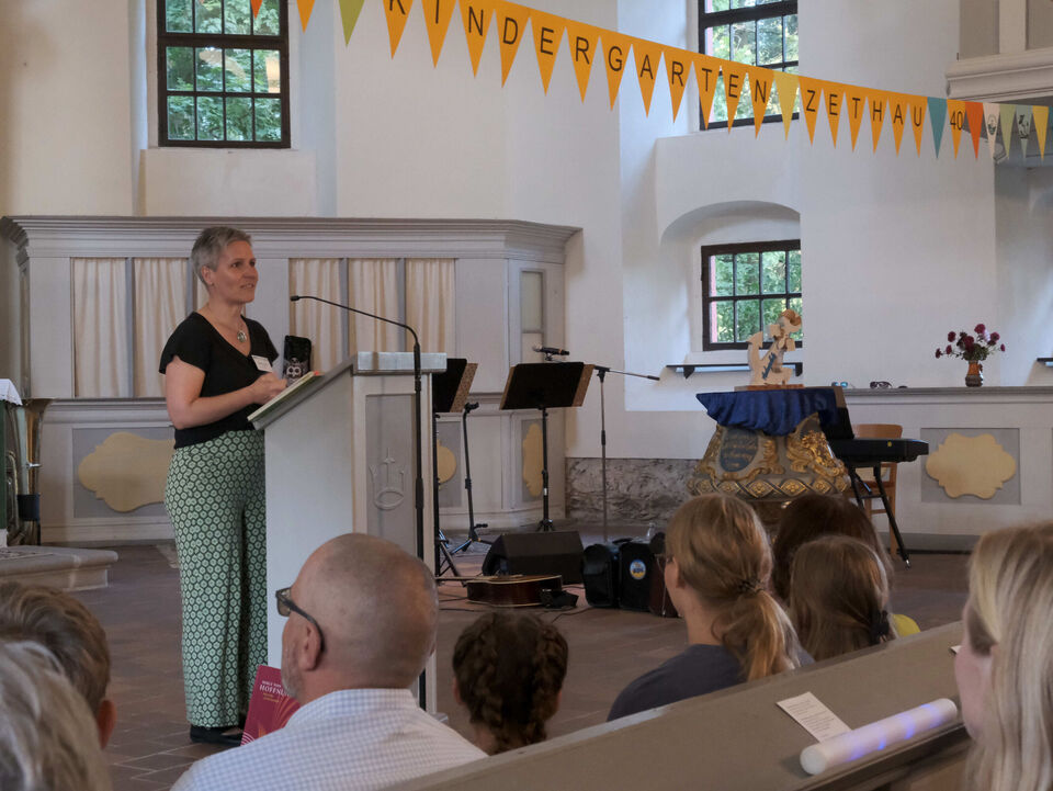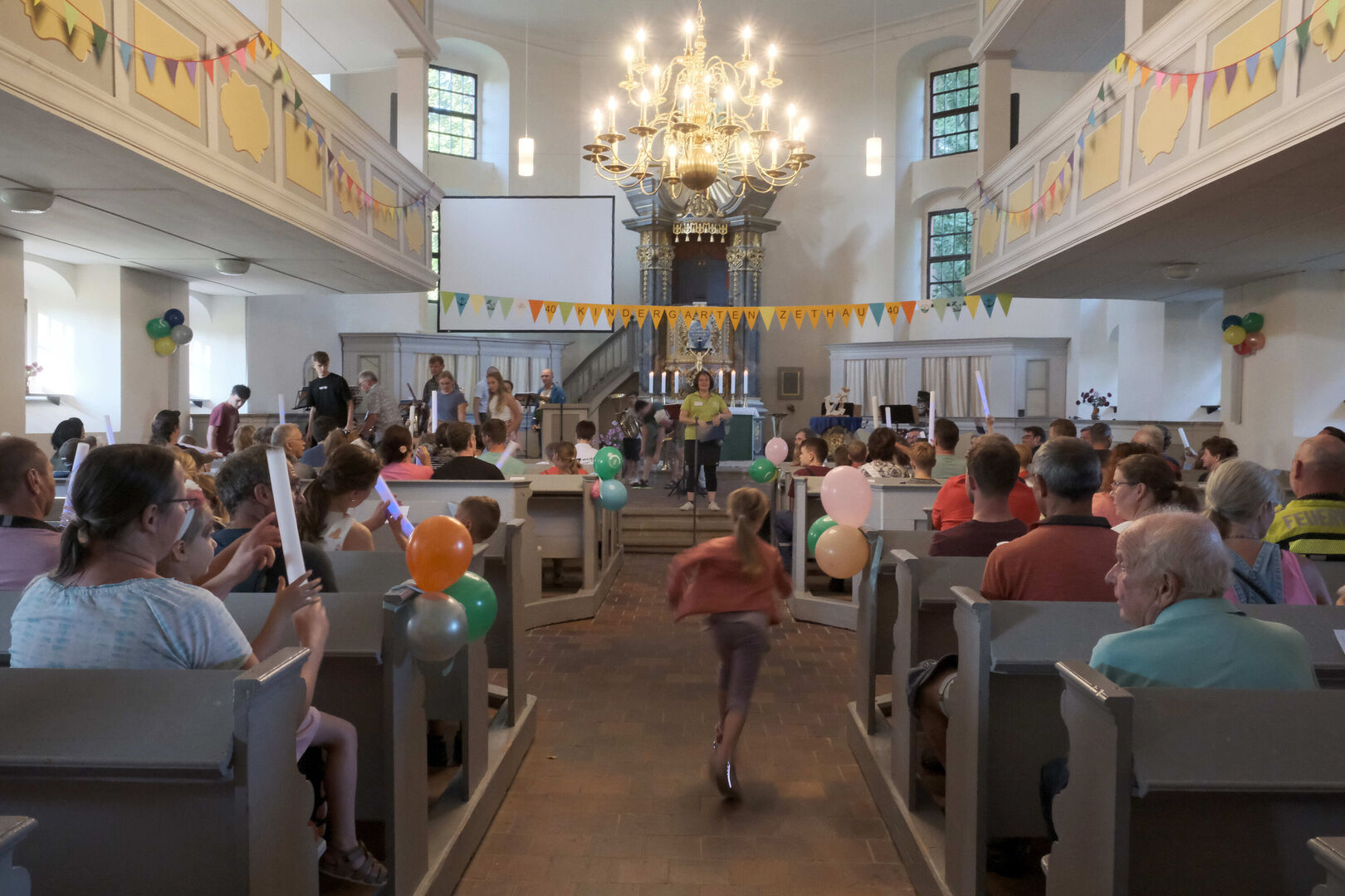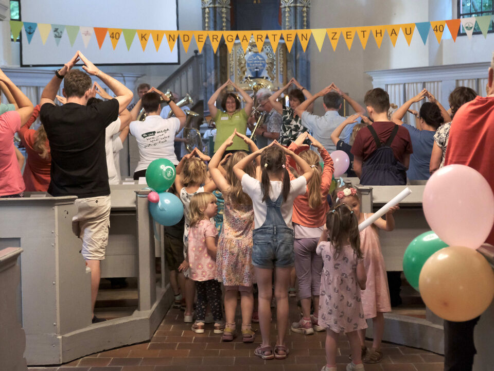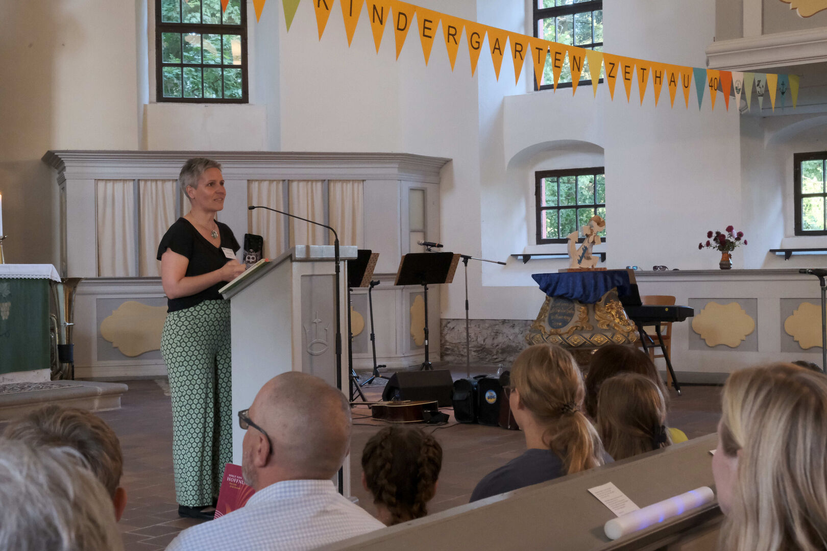 Gemeinsam ging es dann in die Kirche für den festlichen Teil des Tages: mit Grußworten, Liedern vom Posaunenchor, dem Kinderchor, Fürbitten und einer Uraufführung der Band. Im Ankerplatz-Hit heißt es: „Ankerplatz, oh Ankerplatz, hier in Zethau da schlägt unser Herz. Gemeinsam stark, Hand in Hand, im Kinderhaus, das uns alle vereint.“ Es war ein sehr berührender Abschluss für ein wunderbares Fest, das sehr eindrücklich gezeigt hat, wie bunt, lebendig und vielfältig das Miteinander in und um unser Kinderhaus ist.