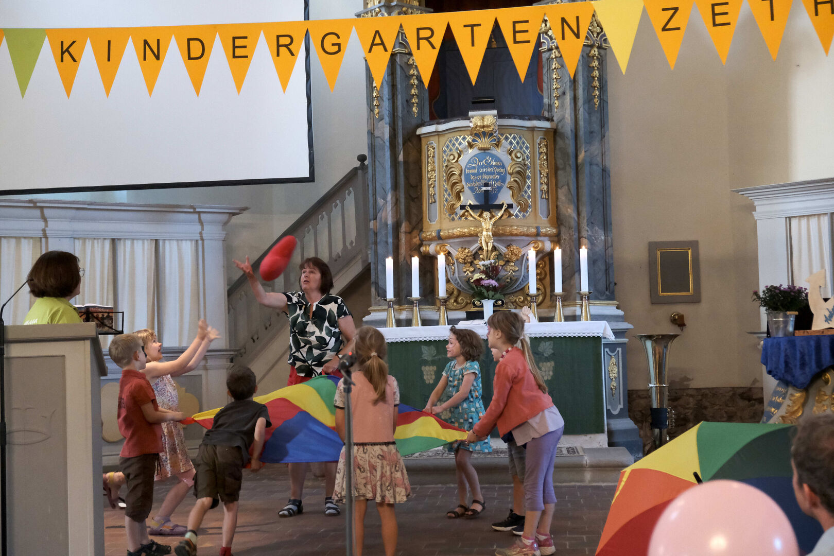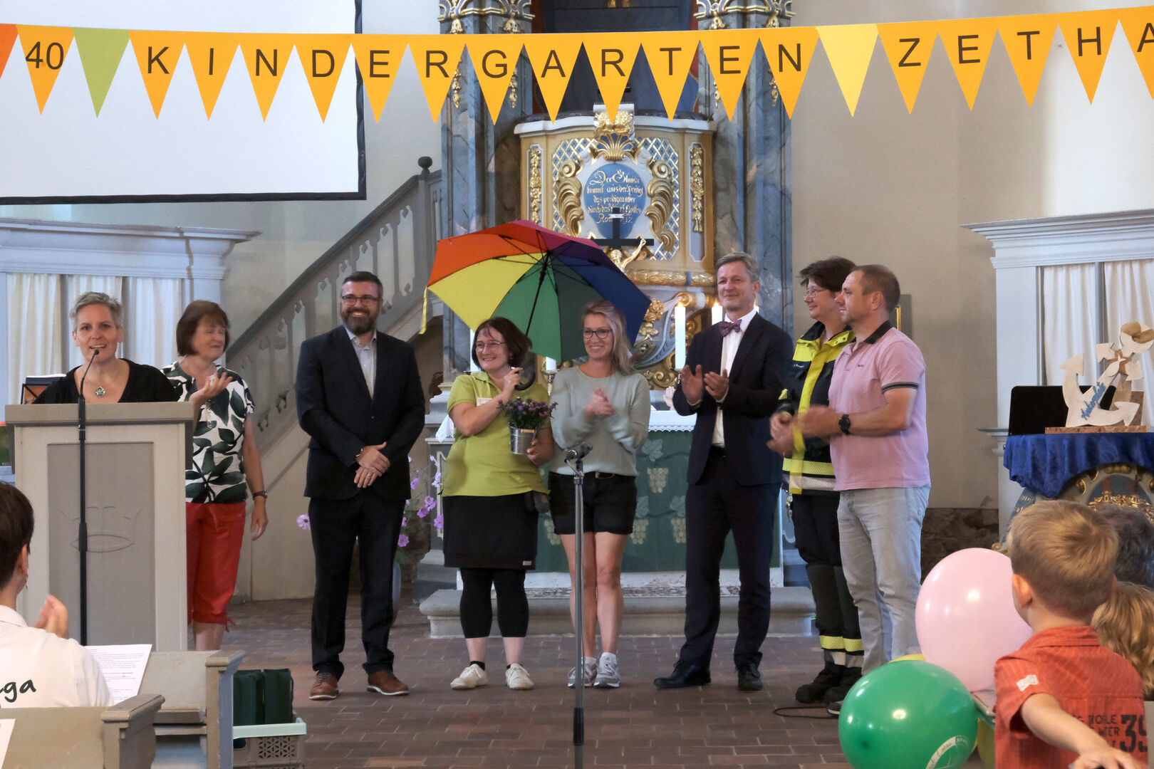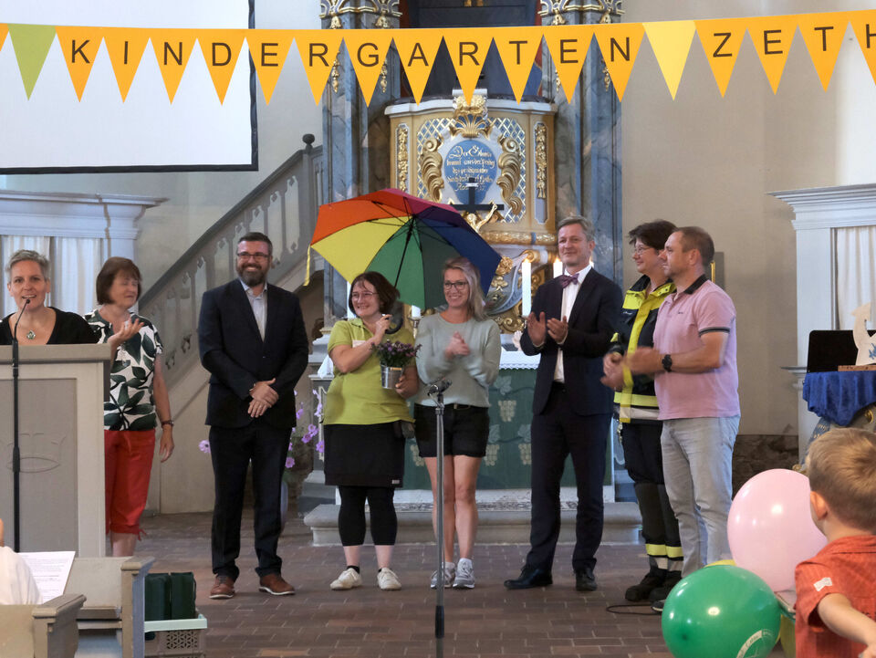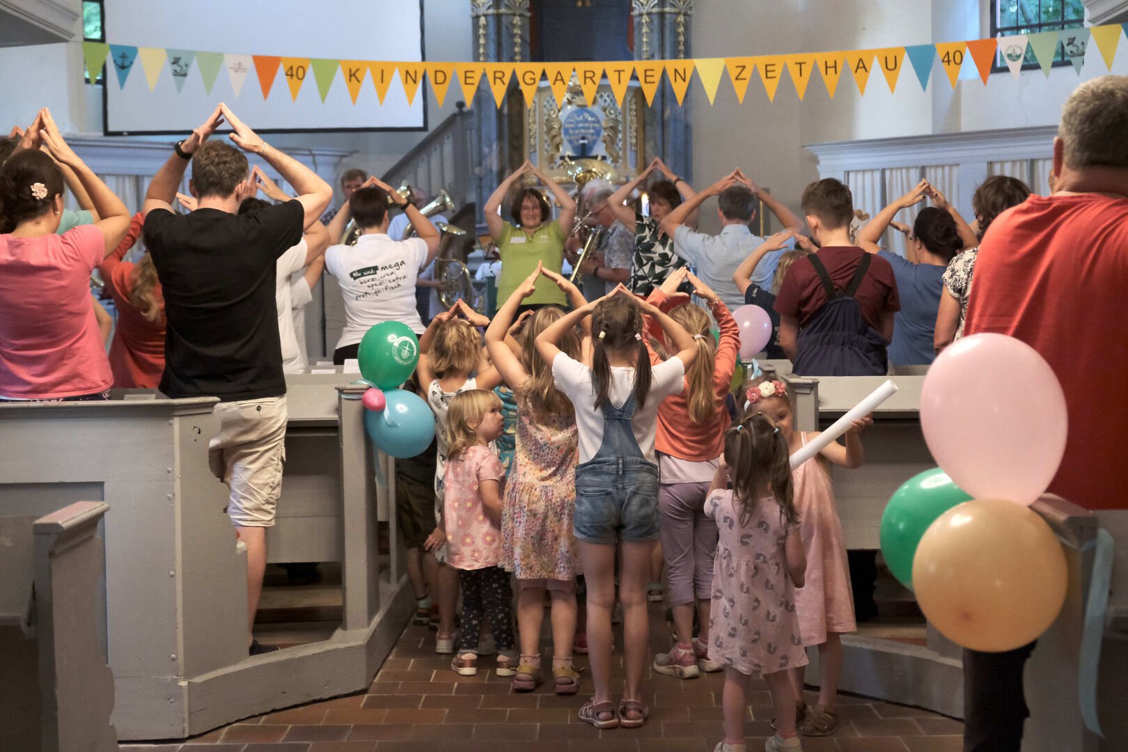 Gemeinsam ging es dann in die Kirche für den festlichen Teil des Tages: mit Grußworten, Liedern vom Posaunenchor, dem Kinderchor, Fürbitten und einer Uraufführung der Band. Im Ankerplatz-Hit heißt es: „Ankerplatz, oh Ankerplatz, hier in Zethau da schlägt unser Herz. Gemeinsam stark, Hand in Hand, im Kinderhaus, das uns alle vereint.“ Es war ein sehr berührender Abschluss für ein wunderbares Fest, das sehr eindrücklich gezeigt hat, wie bunt, lebendig und vielfältig das Miteinander in und um unser Kinderhaus ist.