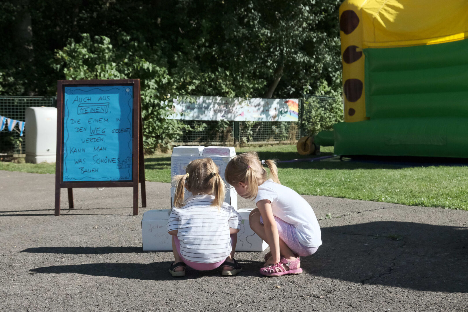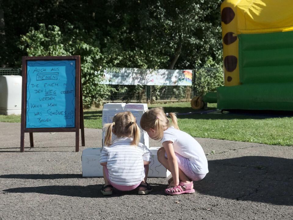 40 Jahre Kinderlachen: inklusiv und bunt! Das haben wir am Sonnabend in unserem Christlichen Kinderhaus „Ankerplatz“ in Zethau gefeiert. Am Nachmittag strömten die Kinder mit ihren Familien, Ehemalige und Freunde des Hauses herbei, um gemeinsam den 40. Geburtstag des Kindergartens zu feiern. Schon am Eingang „stolperten“ sie über eine Mauer aus Pappsteinen und waren eingeladen, diese Barriere aus dem Weg zu räumen und etwas kreatives Neues daraus entstehen zu lassen.