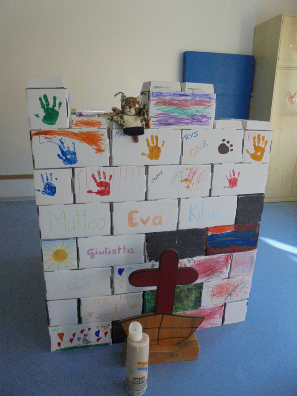Und damit unser Turm noch größer wird und nicht mehr übersehen werden kann, hat jedes Kind seinen ganz eigenen, besonderen Stein gestaltet und dem Turm hinzugefügt.