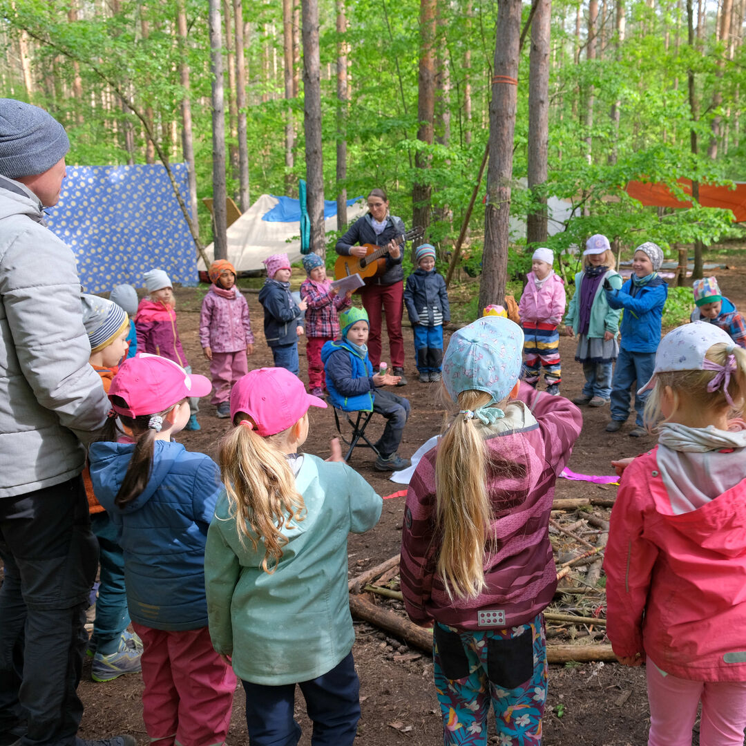 Die Waldwochen sind eine schöne Tradition im Jahreskreis des Ökumenischen Kinderhauses: Immer im Mai geht es mit den Kindern aus den Wach- und Entspannungsgruppen jeden Tag in die Junge Heide. Hier starten die Mädchen und Jungen mit einem gemeinsamen Morgenkreis in den Tag, nehmen das Mittag aus dem Rucksack ein, halten Mittagsschlaf in den Zelten oder ruhen sich aus, entdecken die Schätze und Geheimnisse des Waldes. Noch bis zur nächsten Woche werden die Kinder jeden Tag im Wald verbringen, ehe es mit Sack und Pack und vielen Erinnerungen an spannende Erlebnisse zurück ins Kinderhaus geht.