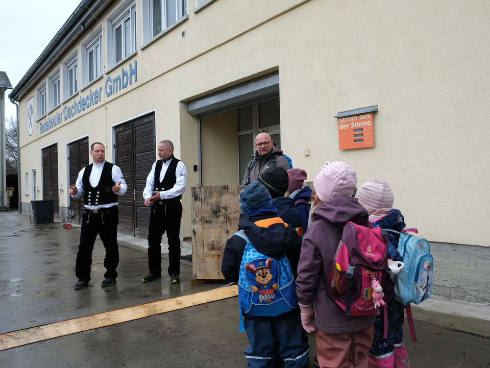 Nach dem Ausflug ins Lehrkabinett wartete im Hof noch eine Überraschung auf die jungen Besucher. Mit zwei VR-Brillen konnten sie sich fast wie ein echter Dachdecker fühlen, quasi in luftige Höhen steigen und von oben auf die Welt schauen. Kein Wunder, dass auf die Frage, wer sich vorstellen könnte, als Dachdecker zu arbeiten, über die Hälfte der Hände nach oben ging.