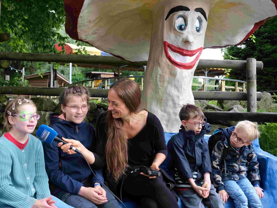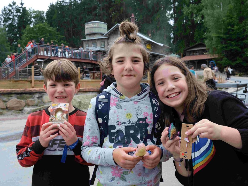 Den ganzen Tag über entdeckten die Mädchen und Jungen immer wieder etwas Neues, ließen sich in Fässern durchs Wasser driften und vom Kuh-Breakdancer durchschütteln, begegneten Dinosauriern und Märchenfiguren und kehrten zum Mittag in der Westernstadt ein, um sich mit Pizza und Burger zu stärken, bevor es wieder auf Erkundungstour ging.