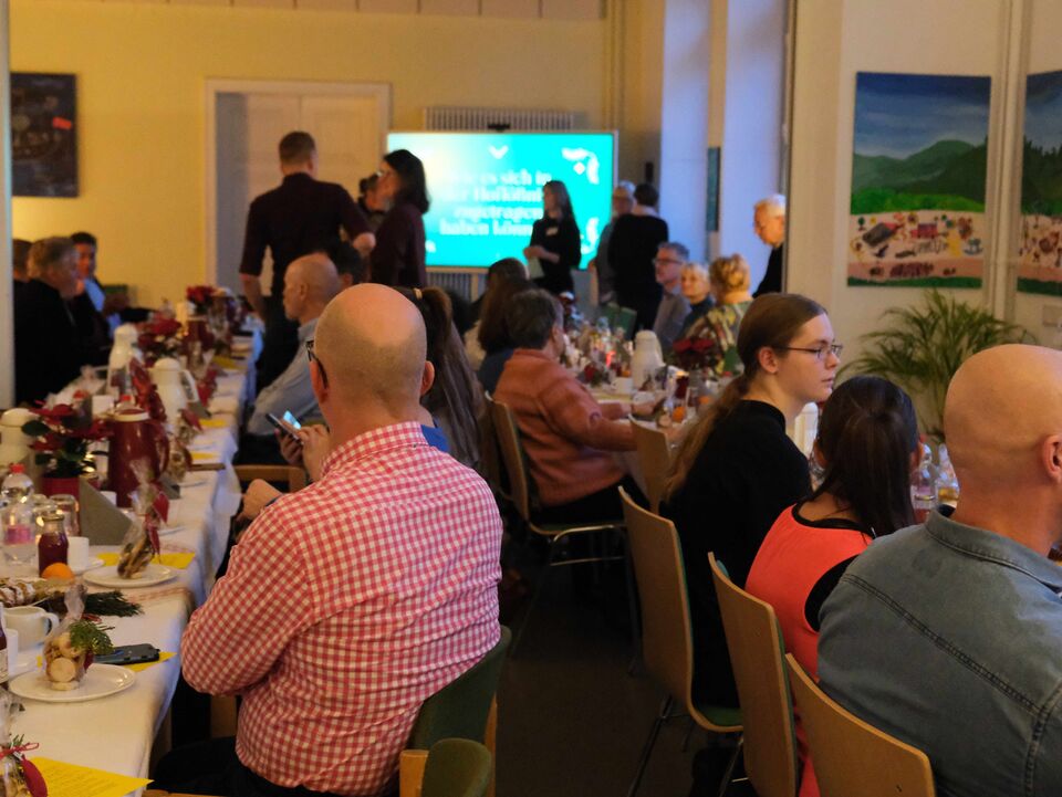 Inzwischen kommen zur Weihnachtsfeier so viele Gäste, dass wir vom Freizeitkeller in den Steinsaal der Wach’schen Villa umziehen mussten.