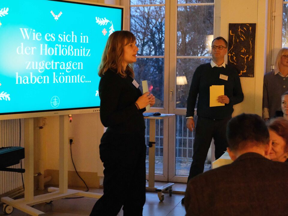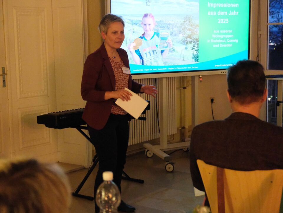 Die Wohngruppen hatten ihr Programm schon im Vorfeld aufgenommen: eine Weihnachtsgeschichte, die dieses Mal in der Lößnitz spielte und Maria und Josef auf ihrem Weg durch Lößnitzgrund und Weinberge begleitete. Die Foto- und Videogeschichte sorgte für viel Applaus vom begeisterten Publikum, bevor Kinderarche-Vorständin Barbara Gärtner das Wort übernahm und die Gäste herzlich begrüßte.