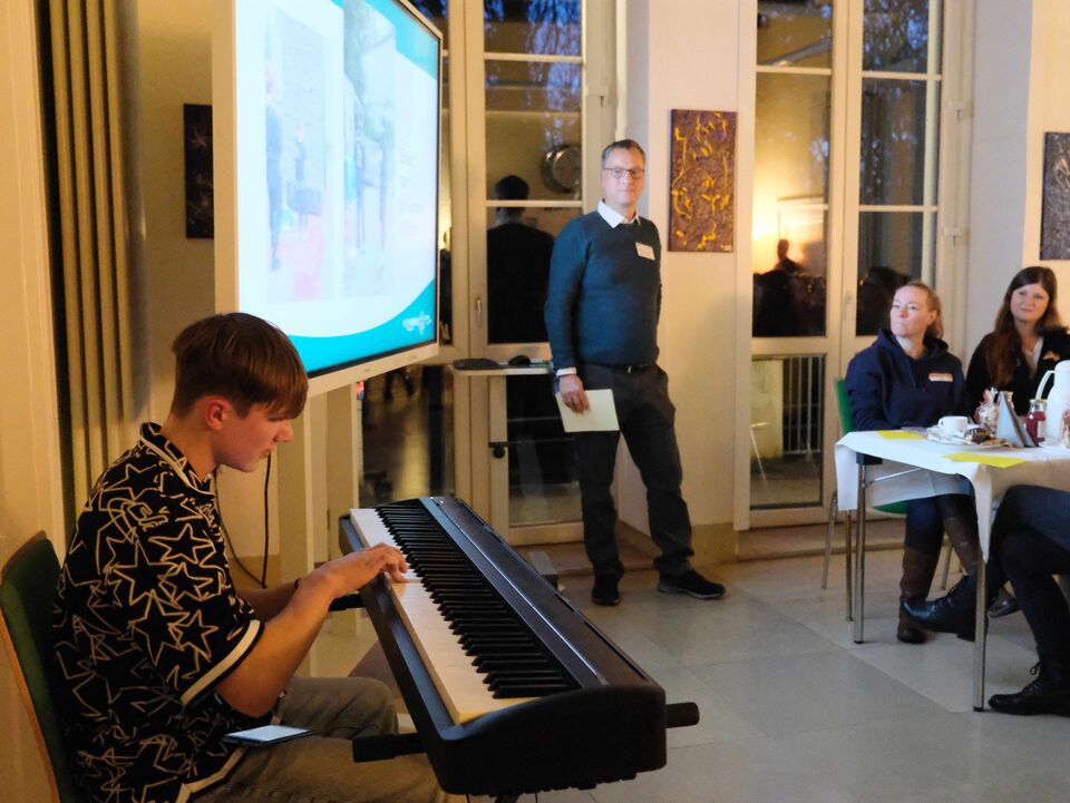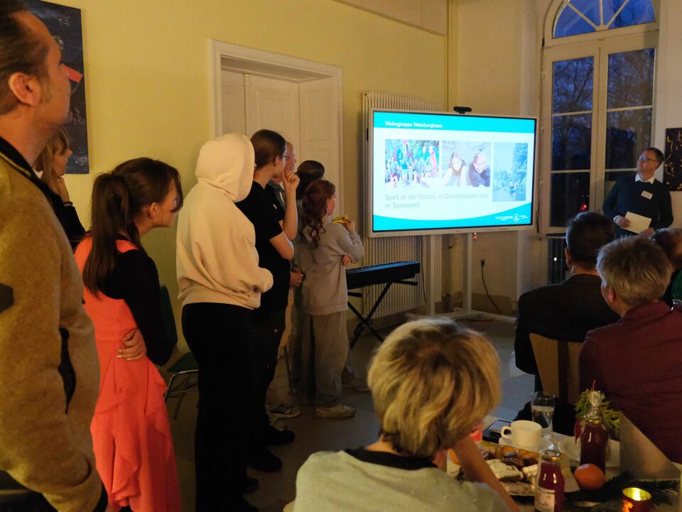 Mit einer Foto-Präsentation nahmen Jugendliche aus jeder Wohngruppe und Christoph Förster für IFB und EFB die Gäste dann mit auf eine kleine Reise durch das vergangene Jahr und dankten für die schönen Erlebnisse, die dank der Unterstützung möglich waren, bis Finn aus unserer Wohngruppe Naundorf mit einem Lied auf dem Klavier den Programm-Teil beendete.