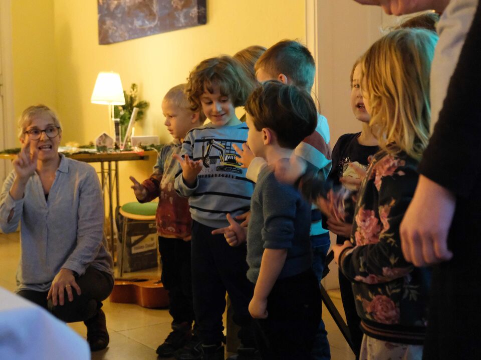 Zur traditionellen Freundeskreis-Weihnachtsfeier unserer Radebeuler Wohngruppen und Angebote kommen inzwischen so viele Gäste, dass wir vom Freizeitkeller in den Steinsaal der Wach’schen Villa umziehen mussten. Auch hier saßen die zahlreichen Freunde und Unterstützer dicht gedrängt, und auch hier kam gemütliche Stimmung auf. Denn nach der Begrüßung durch Einrichtungsleiter Samuel Schüßler und Christin Baberowski stimmten die Mädchen und Jungen aus unserem Christlichen Kinderhaus „Guter Hirte“ mit einem Fingerspiel und einem Lied auf den Advent ein. Sie hatten sogar ein paar selbst gezogene Kerzen als kleines Geschenk für die Gäste dabei.