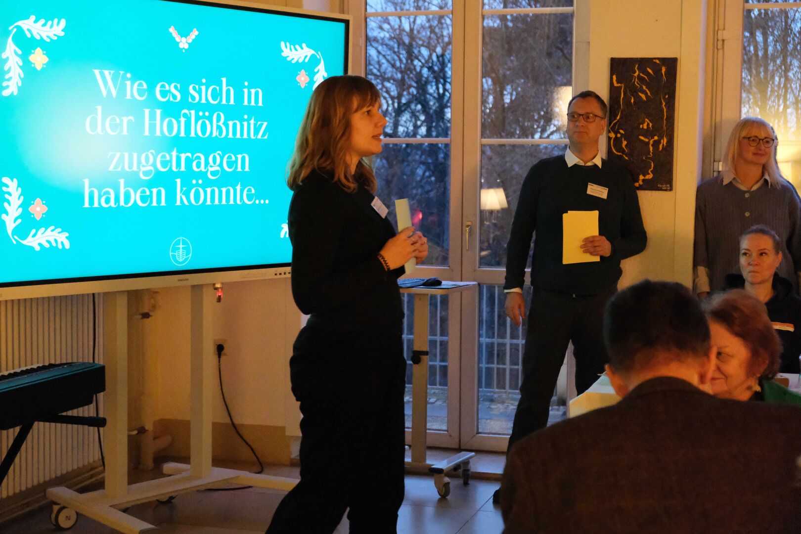 Inzwischen kommen zur Weihnachtsfeier so viele Gäste, dass wir vom Freizeitkeller in den Steinsaal der Wach’schen Villa umziehen mussten.