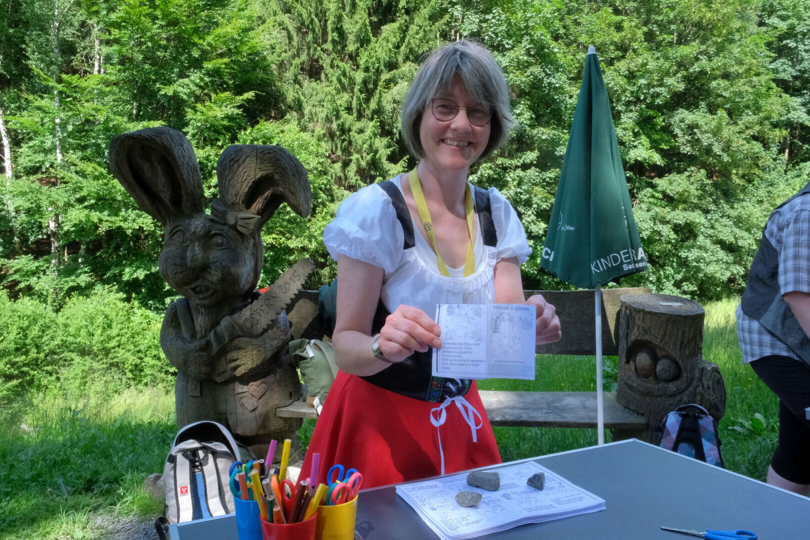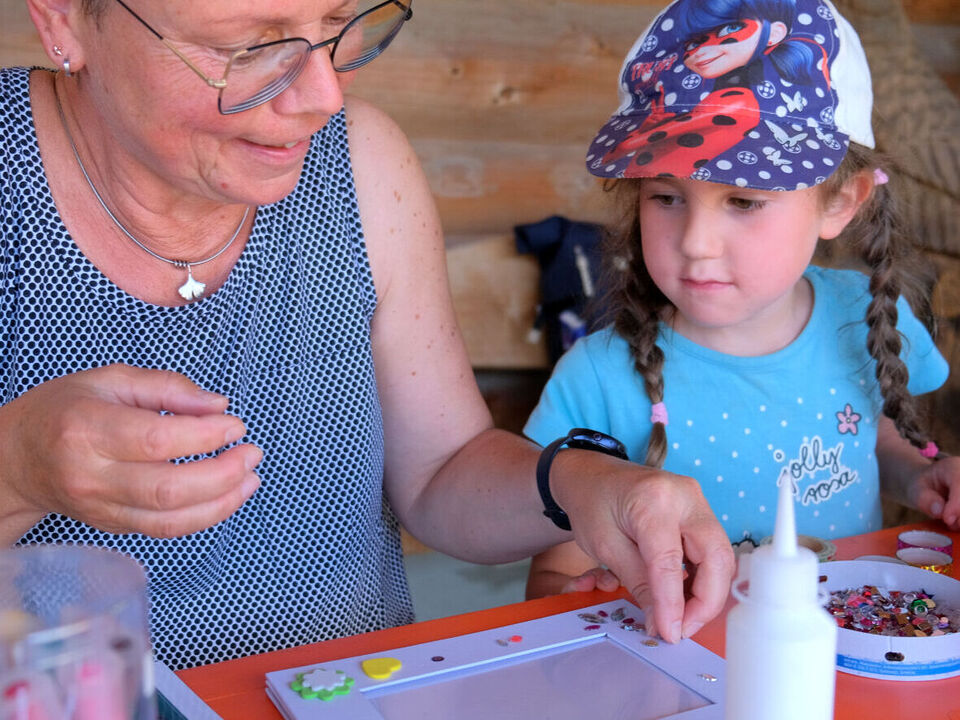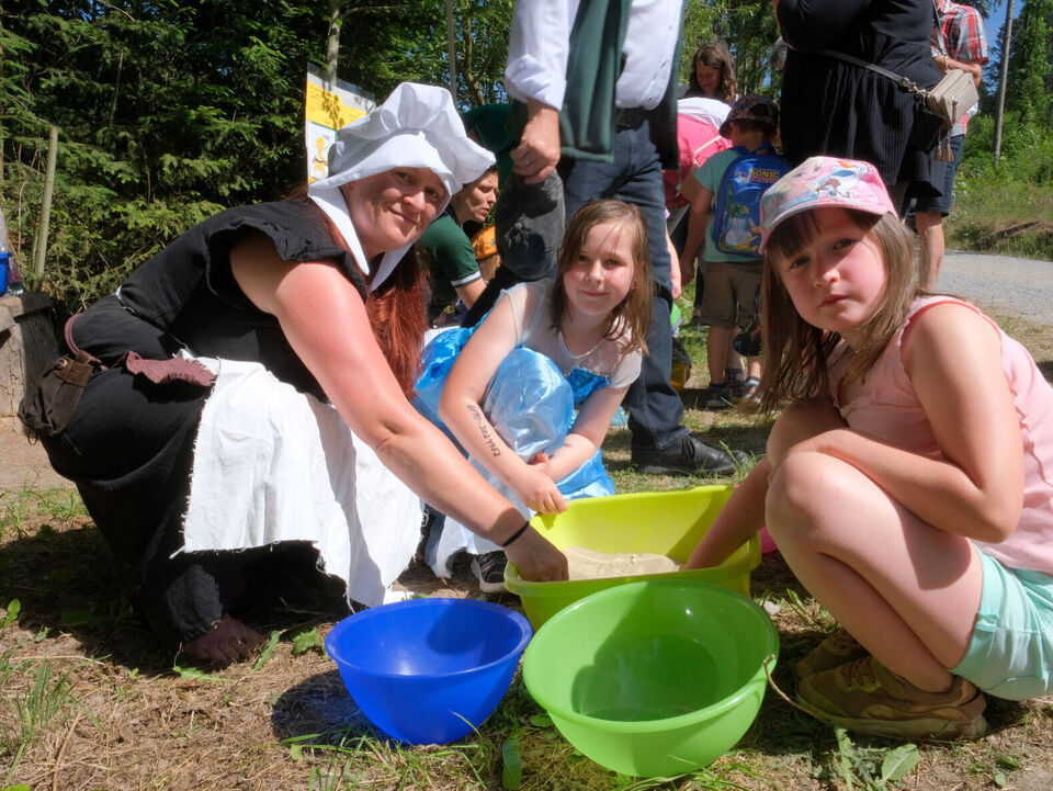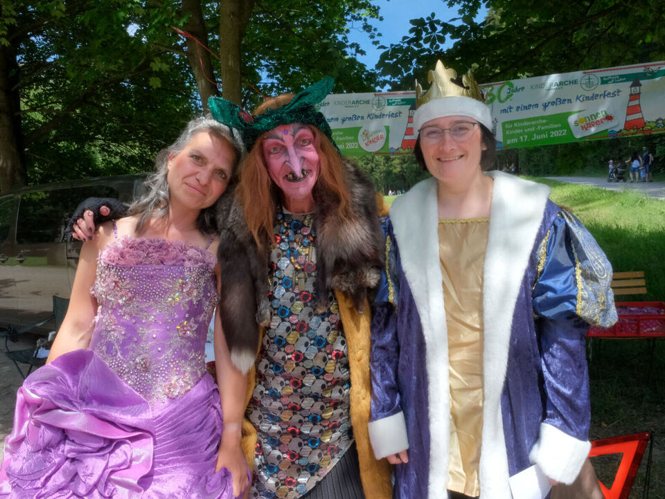 Nach den sieben Märchen-Stationen auf dem Weg konnten sie eigene Bilderrahmen gestalten, sich schminken lassen, ihre Stoffbeutel verschönern, sich an einer Fotobox verkleiden und fotografieren lassen oder den Abenteuerspielplatz und den verborgenen Tunnel erobern. Manche Kinder hatten sich auch selbst verkleidet, so dass Prinzessinnen und Zauberer, sogar eine Schildkröte das Gelände bevölkerten. Für das leibliche Wohl wurde mit Kaffee und Kuchen sowie mit Leckereien vom Grill gesorgt.