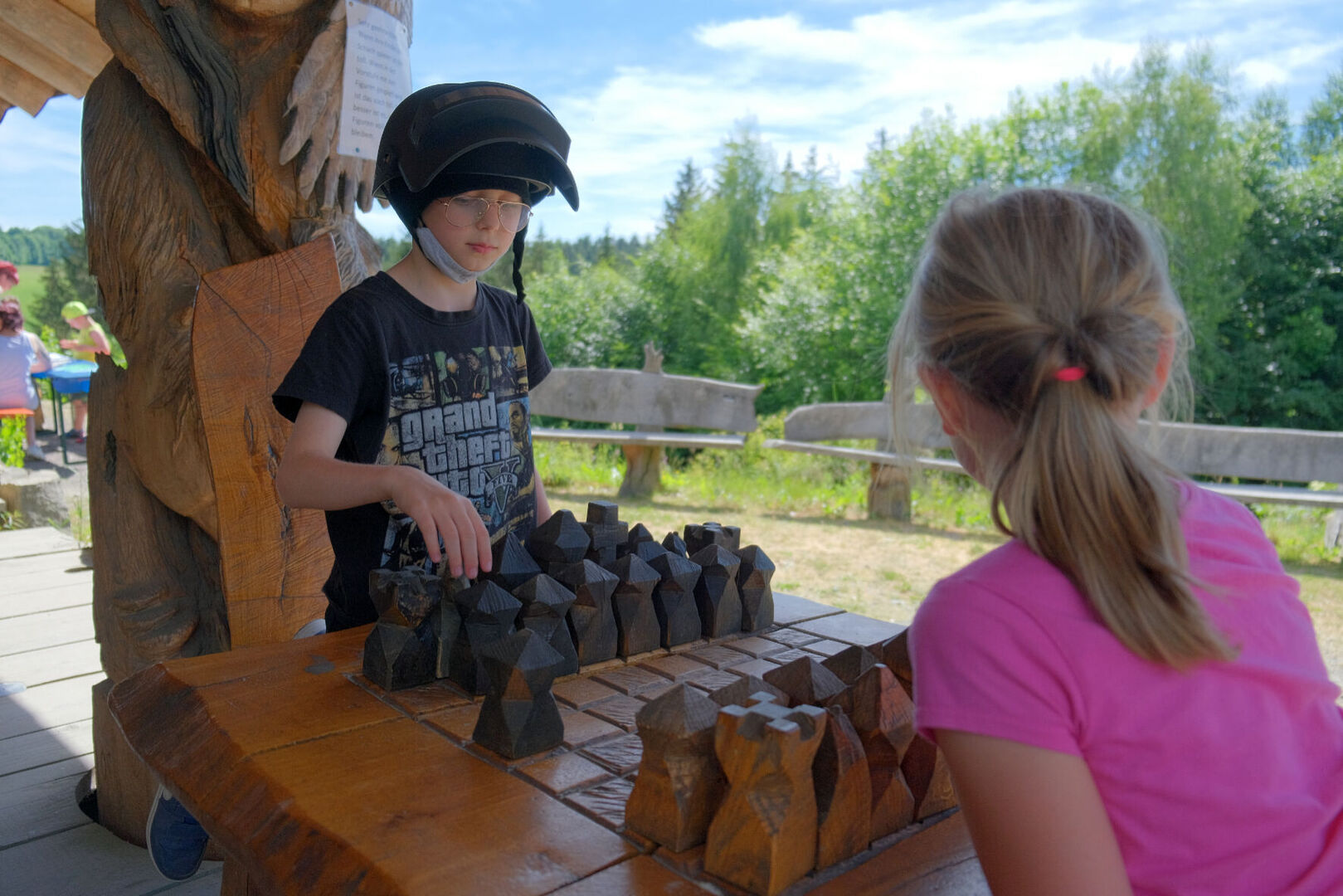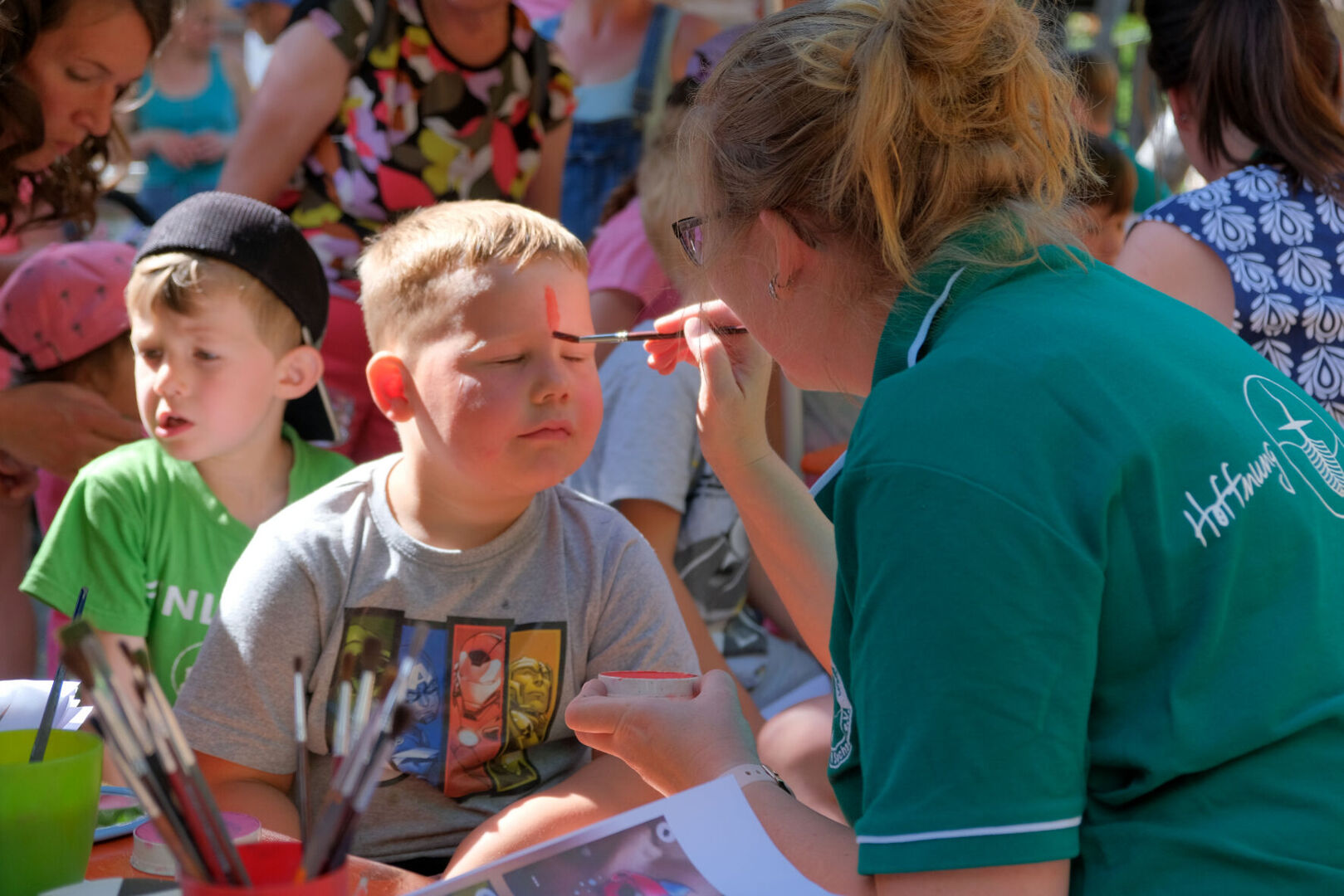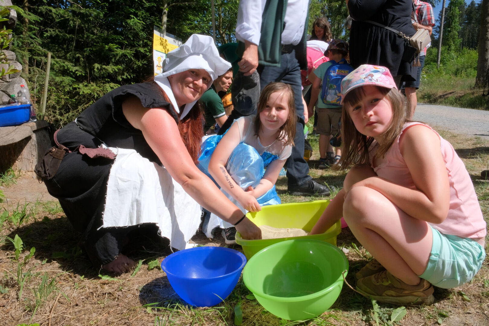 Nach den sieben Märchen-Stationen auf dem Weg konnten sie eigene Bilderrahmen gestalten, sich schminken lassen, ihre Stoffbeutel verschönern, sich an einer Fotobox verkleiden und fotografieren lassen oder den Abenteuerspielplatz und den verborgenen Tunnel erobern. Manche Kinder hatten sich auch selbst verkleidet, so dass Prinzessinnen und Zauberer, sogar eine Schildkröte das Gelände bevölkerten. Für das leibliche Wohl wurde mit Kaffee und Kuchen sowie mit Leckereien vom Grill gesorgt.
