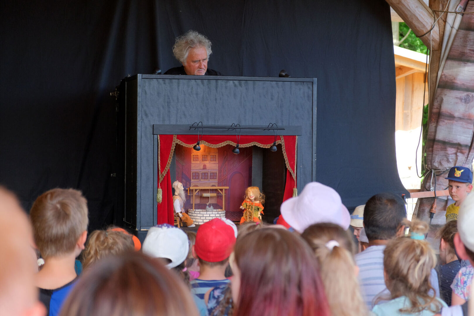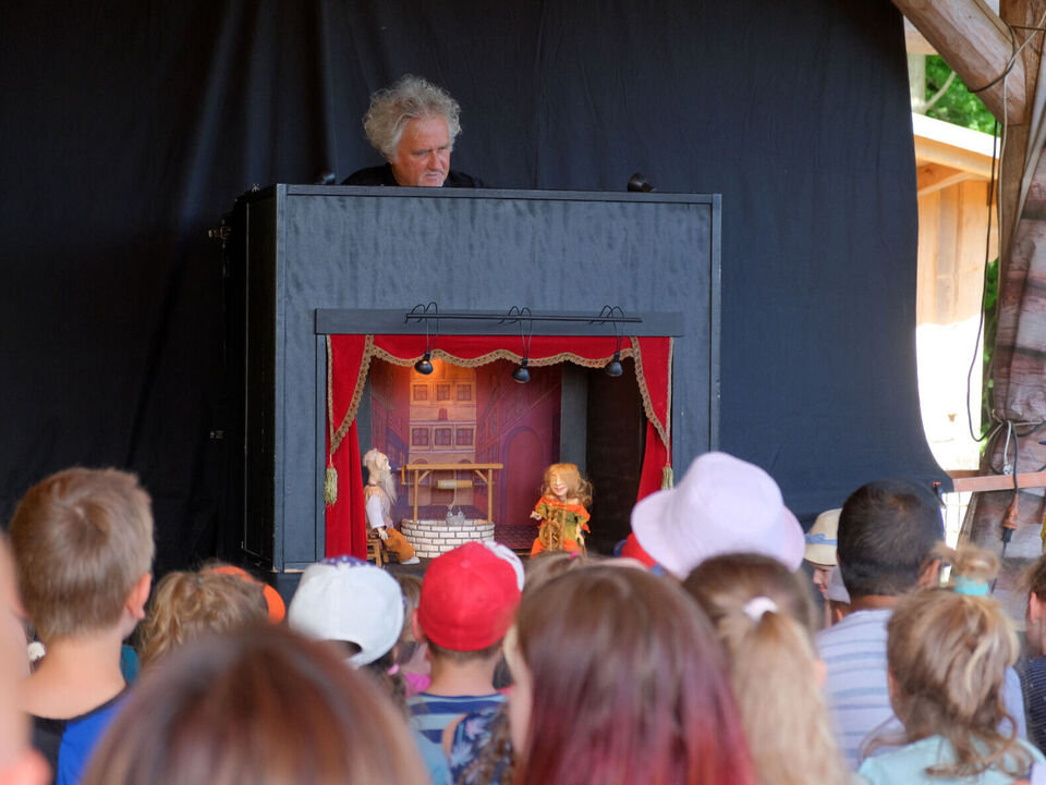 Puppenspieler Tobias Klug verzauberte die Kinder mit dem Märchen von „Frau Holle“, der Sauensäger Andreas Martin beeindruckte sie mit wilden Masken und Hexe Baba Jaga (alias Rainer König) brachte sie mit ihren verrückten Späßen und (mehr oder minder geglückten) Zauberstückchen zum Lachen.
