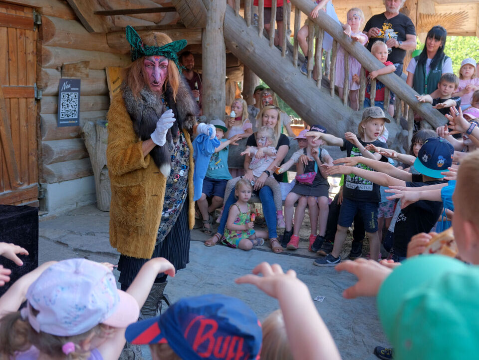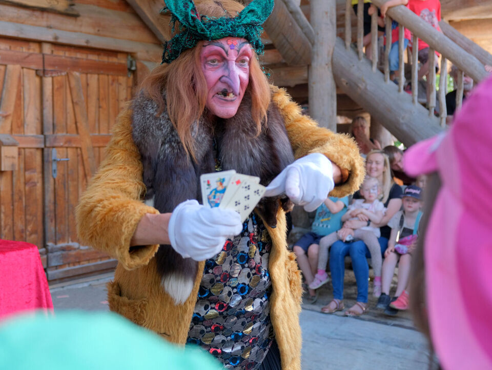 Hexe Baba Jaga (alias Rainer König) brachte die kleinen und großen Gäste des Festes mit ihren verrückten Späßen und (mehr oder minder geglückten) Zauberstückchen zum Lachen.