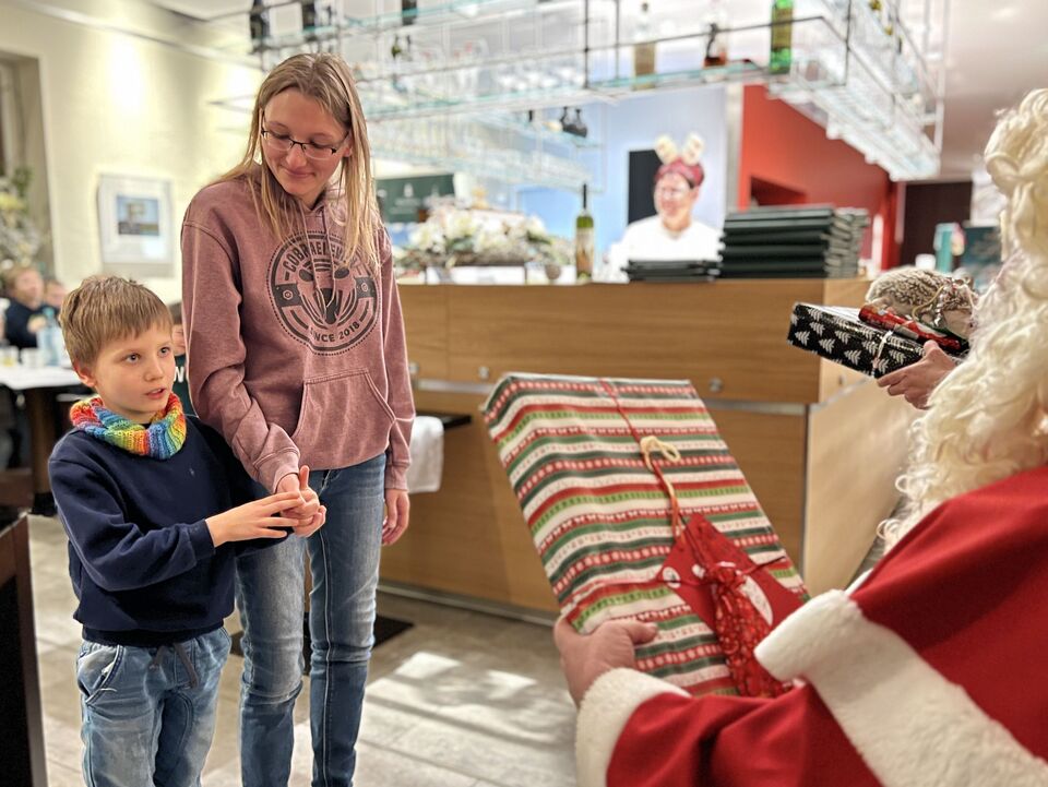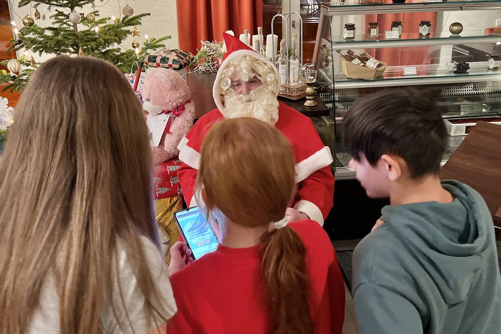 Bei Kerzenschein, Plätzchen und warmen Getränken trauten sich alle, mehr oder weniger aufgeregt, zum Weihnachtsmann und bedankten sich mit einem Lied oder Gedicht für die liebevoll verpackten Geschenke.