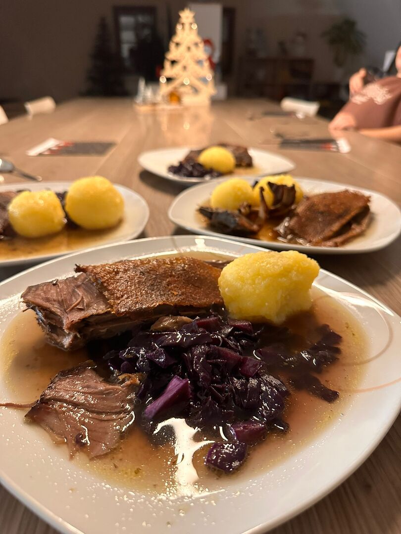 Leckere Gans mit selbst gemachten Klößen und Rotkraut gab es auch in der Wohngruppe in Lichtenstein, wo drei Kinder gemeinsam mit den Erziehern einen schönen Tag und Abend verlebten. Der Nachmittag begann mit einem gemütlichen Kaffeetrinken, gefolgt von einem Besuch des Krippenspiels in der Kirche. Nach dem leckeren Festmahl sorgte die Bescherung für strahlende Augen und große Freude.