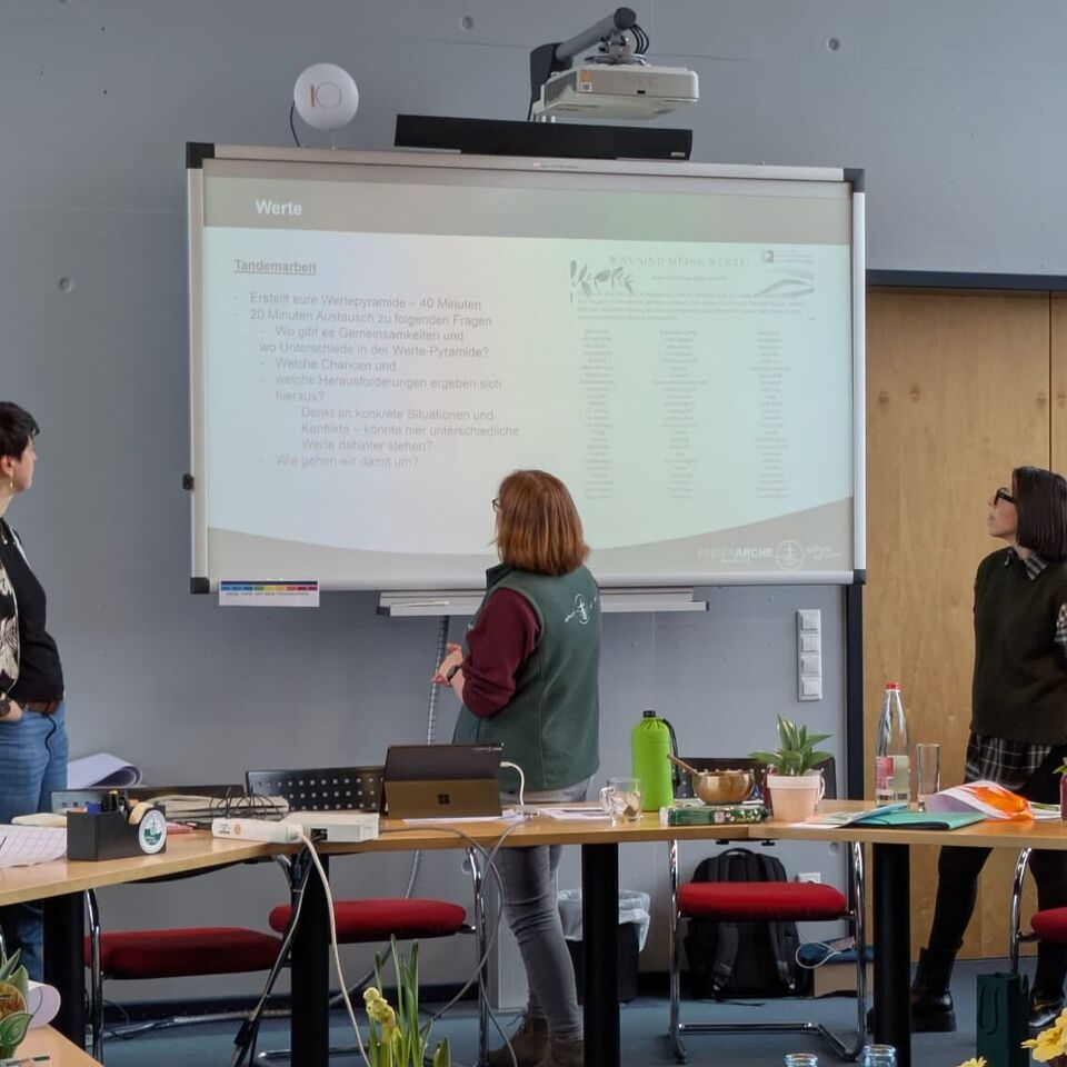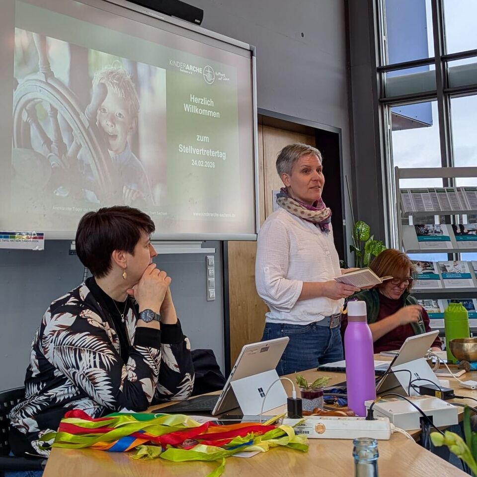 Etwa 20 stellvertretende Einrichtungsleitungen der Kinderarche Sachsen tauschten sich am Dienstag im Berufsförderungswerk Dresden zu aktuellen Themen aus. Nach einem kurzen Stille-Impuls durch Vorständin Barbara Gärtner standen Werte, Visionen und die Zukunft der Kinderarche Sachsen auf dem Programm.