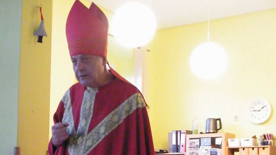 Wer klopft den da an der Tür des Kinderhauses "Guter Hirte" ? Der Bischof Nikolaus!